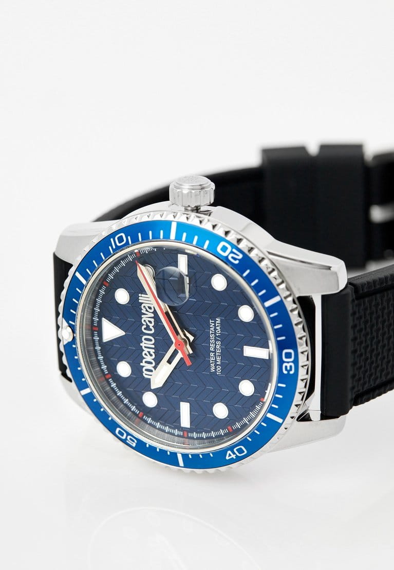 Погрузитесь в мир роскоши и безупречного стиля с мужскими наручными часами ROBERTO CAVALLI RC5G084P1015. Эти часы – воплощение смелого дизайна и итальянской элегантности, созданные для мужчины, который ценит внимание к деталям и не боится заявить о себе. Круглый корпус диаметром 42 мм выполнен из нержавеющей стали, толщина корпуса составляет 11 мм, что придает модели выразительный внешний вид и надежную защиту от внешних воздействий. Циферблат, искусно оформленный фирменными элементами Roberto Cavalli, притягивает взгляд и подчеркивает ваш безупречный вкус. Часы оснащены кварцевым механизмом, также обладают функцией отображения даты, что делает их удобными для ежедневного использования. Минеральное стеклоМинеральное стеклоМинеральное стекло представляет собой искусственно выращенный минерал кварца. Такое стекло отличается особой устойчивостью к повреждениям и царапинам. Уступает по некоторым качествам сапфировому стеклу. защищает часы от царапин. Водозащита 100 метров, позволит плавать, нырять и заниматься другими водными видами спорта. Силиконовый ремешок на стандартной застёжке обеспечивает комфортное ношение. Поворотный безельБезельВнешний ободок, закрепляющий стекло. В спортивных часах так называется поворотное кольцо с делениями на циферблате, выполняет роль таймера – замеряет отрезки времени на шкале. Неподвижный безель – элемент декора. Однонаправленно вращающийся безель на дайверских часах позволяет фиксировать моменты погружения и выныривания на поверхность. с PVD-покрытиемPVDУльтратонкое покрытие наносится в технике вакуумного напыления, сочетает в себе нитрид титана особой прочности со слоем золота или оксида хрома. Несёт в себе декоративную или защитную функцию.. Стрелки и метки с люминесцентным покрытиемЛюминесцентное покрытиеПозволяет считывать показания времени в темноте. Производители наносят на стрелки, часовые индексы, безель или поверхность циферблата светонакопительный состав, дающий холодное свечение. обеспечивают отличную читаемость в любое время суток.