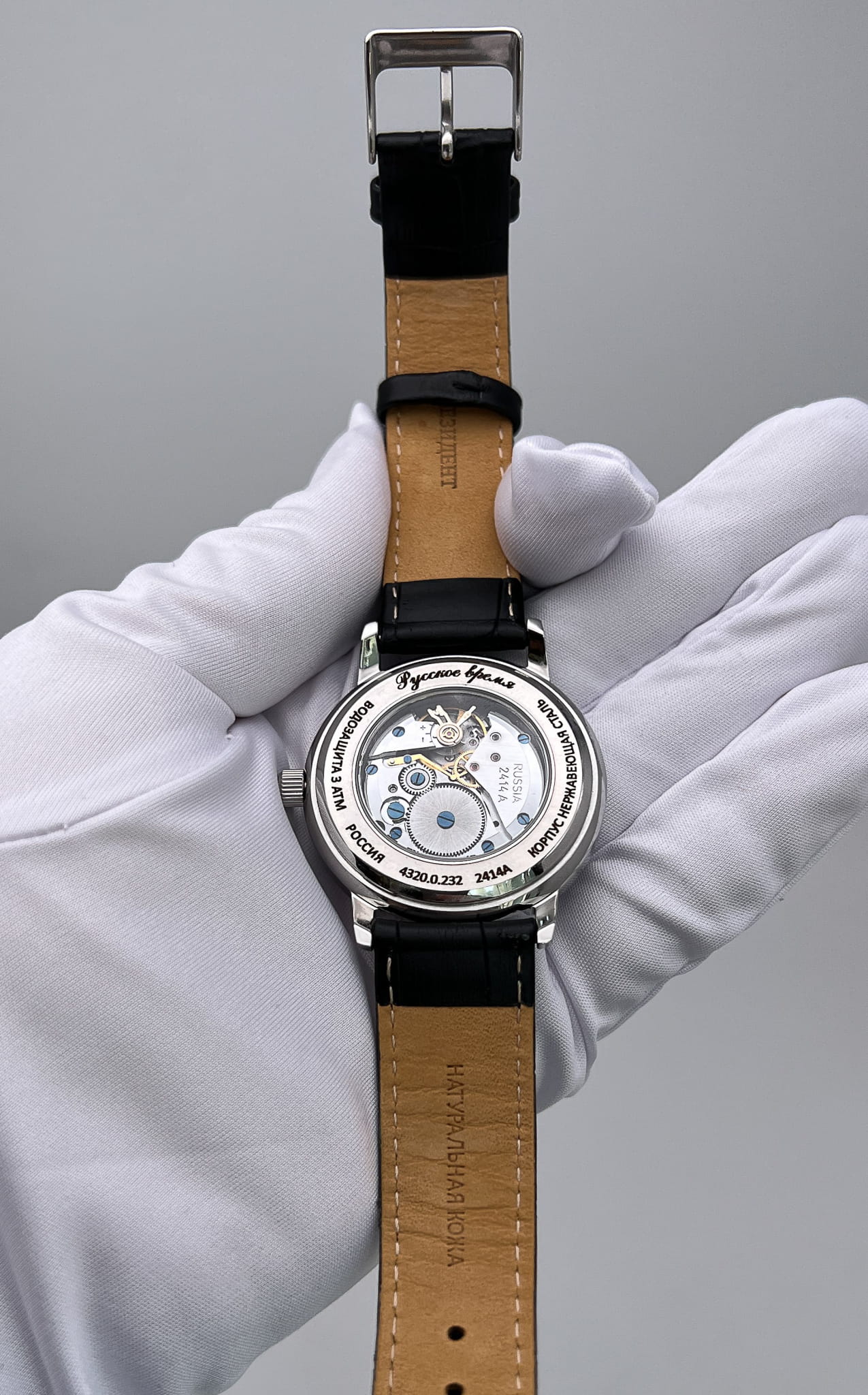 Точность хода обеспечивается надежным механическим механизмом с автоподзаводом Восток 2414 (Россия). Этот высокоточный механизм гарантирует, что ваши часы всегда будут показывать точное время без необходимости регулярной подзарядки батареи. Заводная система работает от движения руки, что делает эти часы особенно удобными и практичными.