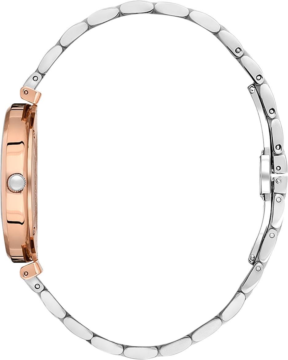 Браслет c частичным PVDPVDУльтратонкое покрытие наносится в технике вакуумного напыления, сочетает в себе нитрид титана особой прочности со слоем золота или оксида хрома. Несёт в себе декоративную или защитную функцию.-покрытием оснащён надёжной застёжкой «бабочка»Застёжка "бабочка"Такой вид застёжки дополняется предохранителями, помогающими избежать случайного раскрытия браслета. Обладают изящным исполнением. , которая обеспечивает удобство посадки и сохраняет цельность внешнего вида.