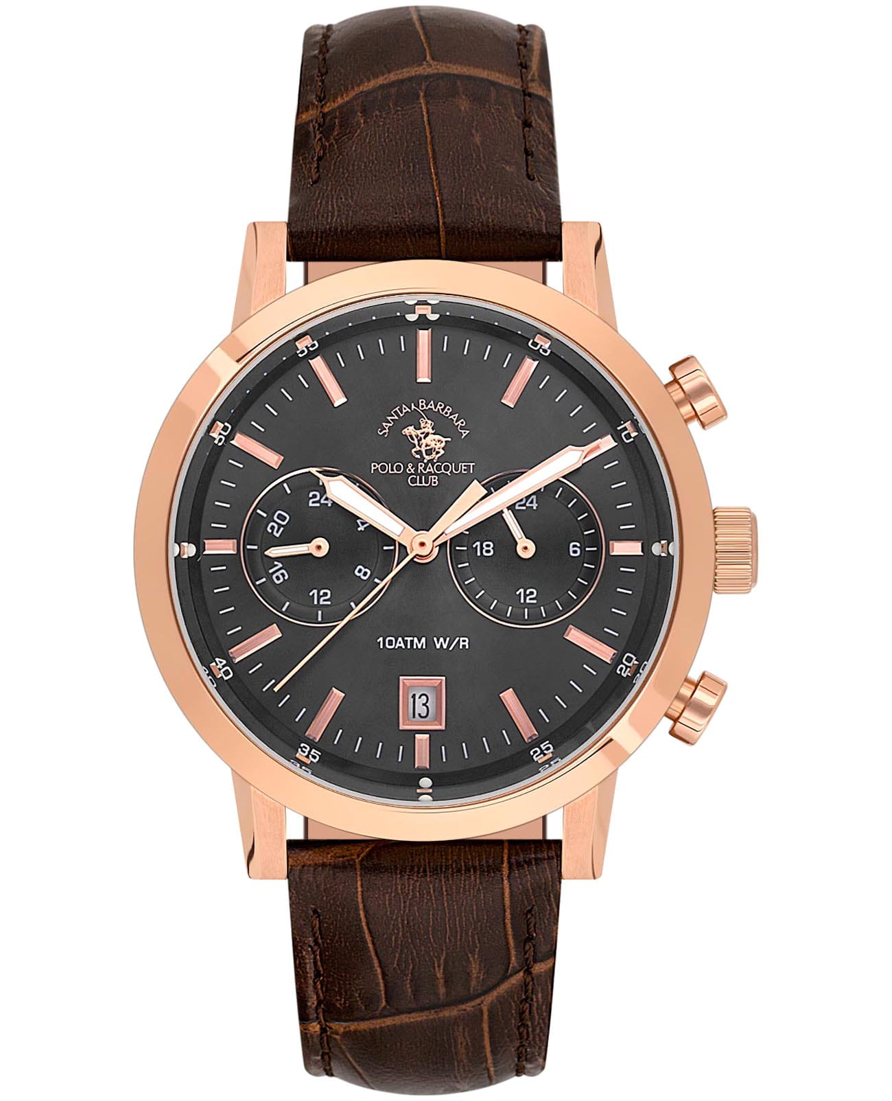 Мужские кварцевые Santa Barbara Polo & Racquet Club SB.1.10586-5 — воплощение элегантности и технического совершенства. Корпус из нержавеющей стали с IP-покрытиемIP-покрытиеМетод ионного напыления. Демонстрирует повышенную устойчивость к истиранию, окислению и химическим веществам. Под воздействием высокого давления и температуры около 1500°C молекулы металла надёжно соединяются с частицами корпуса часов. цвета розового золота, диаметром 41,5 мм, что делает их устойчивыми к внешним воздействиям и придает благородный вид. Циферблат украшен фирменным логотипом и защищён минеральным стекломМинеральное стеклоМинеральное стекло представляет собой искусственно выращенный минерал кварца. Такое стекло отличается особой устойчивостью к повреждениям и царапинам. Уступает по некоторым качествам сапфировому стеклу., устойчивое к царапинам и механическим повреждениям. Кожаный ремешок на застёжке-бабочке с кнопкамиЗастёжка "бабочка"Такой вид застёжки дополняется предохранителями, помогающими избежать случайного раскрытия браслета. Обладают изящным исполнением. обеспечивает комфортное и безопасное ношение. Стрелки с люминесцентным покрытиемЛюминесцентное покрытиеПозволяет считывать показания времени в темноте. Производители наносят на стрелки, часовые индексы, безель или поверхность циферблата светонакопительный состав, дающий холодное свечение., которое светится в темноте после непродолжительной зарядки на свету. Рифленая заводная головка. Второй часовой поясВторой часовой поясФункция, позволяющая отображать время двух часовых поясов одновременно.. 12-ти и 24-х часовой формат. Окошко даты находится в положении 6 часов. Водонепроницаемость 100 метров позволит плавать, нырять и заниматься другими водными видами спорта. Идеальный выбор для тех, кто ценит элегантный дизайн и качество.