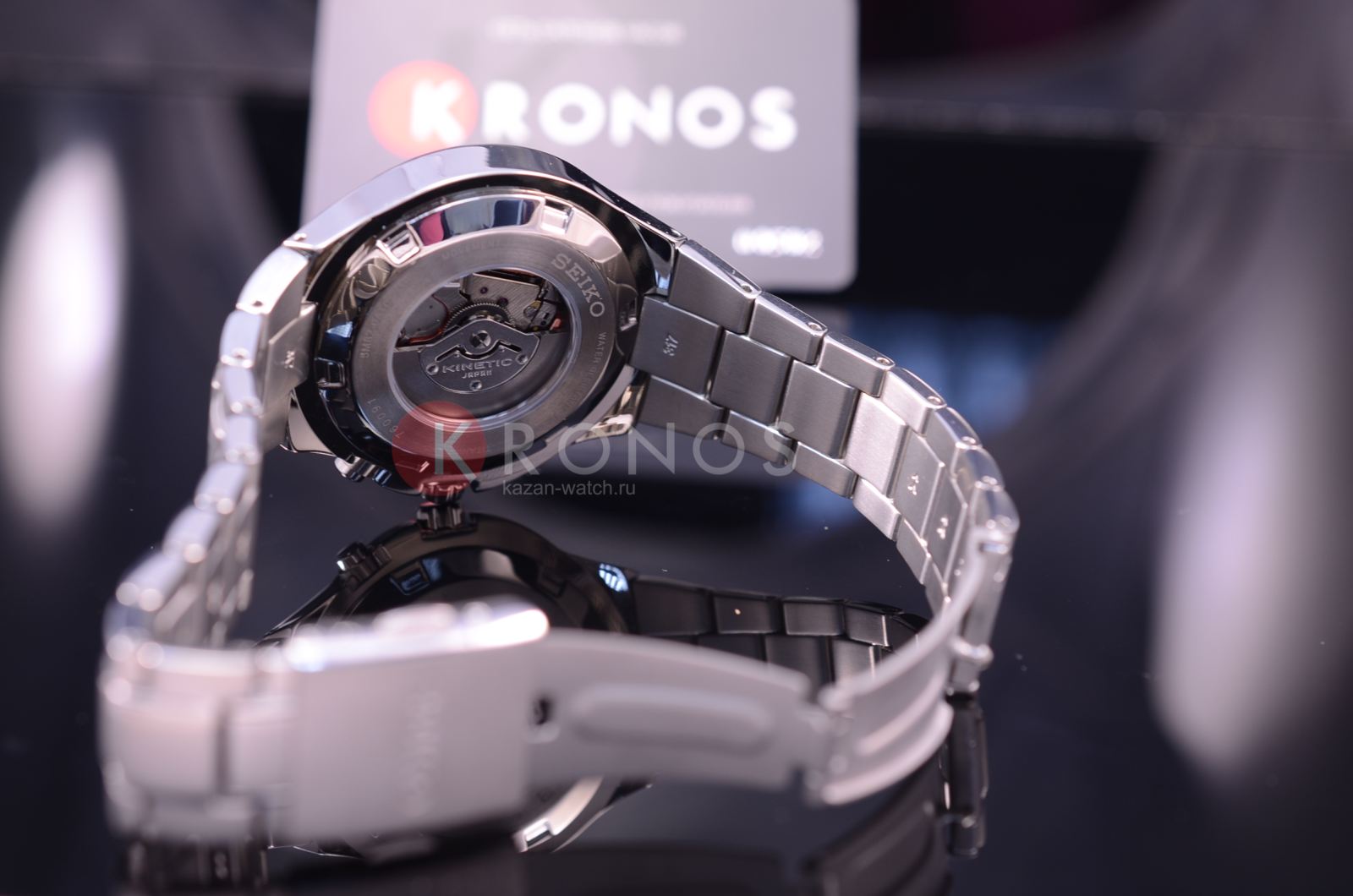 Автоматическая генераторная система Seiko Kinetic. Запас хода при полной зарядке аккумулятора 6 месяцев. Функция индикации заряда (EOL) и предотвращения перезарядки. Заводная головка с защитой. Завинчивающаяся прозрачная задняя крышка. Браслет с раскладывающейся застежкой. Застежка с системой блокировки.