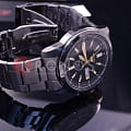 Современные японские наручные мужские часы. Круглый корпус и браслет часов выполнены из  высокопрочной стали с антикоррозийными свойствами. Темный фон циферблата и стальные элементы дизайна. Водонепроницаемость 5 ATM. Минеральное стекло Hardlex, устойчивое к появлению царапин.