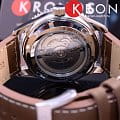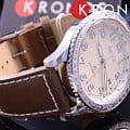 Работу часов обеспечивает японский пружинный механизм 4R35 с возможностью автоматического и ручного завода. Запас хода калибра рассчитан на 40 часов. Вращающийся безельБезельВнешний ободок, закрепляющий стекло. В спортивных часах так называется поворотное кольцо с делениями на циферблате, выполняет роль таймера – замеряет отрезки времени на шкале. Неподвижный безель – элемент декора. Однонаправленно вращающийся безель на дайверских часах позволяет фиксировать моменты погружения и выныривания на поверхность. дополнен логарифмической линейкой, на стрелки нанесено люминесцентное покрытиеЛюминесцентное покрытиеПозволяет считывать показания времени в темноте. Производители наносят на стрелки, часовые индексы, безель или поверхность циферблата светонакопительный состав, дающий холодное свечение.. Ремешок изготовлен из натуральной телячьей кожи, минеральное стекло Hardlex отличается повышенной устойчивостью к царапинам.