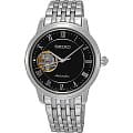 Наручные японские женские часы. Механизм с автоподзаводом, калибр Seiko 4R38. Круглый корпус и браслет часов выполнены из стали. Черный фон циферблата и стальные элементы дизайна. Водонепроницаемость 10 ATM. Сапфировое стекло, устойчивое к появлению царапин. Современный и роскошный аксессуар.
