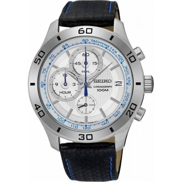 Успешные люди, желающие идти в ногу со временем, выбирают инновационные и надежные часы марки Seiko. Кварцевый механизм, калибр Seiko 8T67. Корпус круглой формы выполнен из высокопрочной стали с антикоррозийными свойствами. Черный фон циферблата и стальные элементы дизайна. Часы снабжены минеральным стеклом, устойчивым к царапинам. Водонепроницаемость до 100 метров. Часы прочно удерживаются на руке ремешком из натуральной кожи синего цвета. Часы оснащены хронографом и тахиметром.
