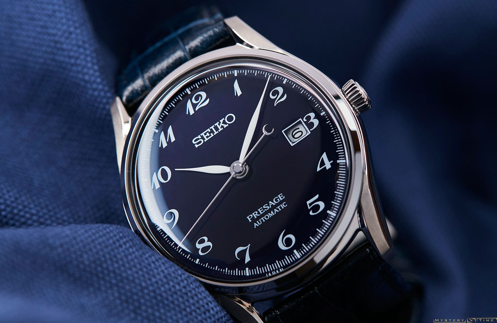 Мужские японские механические часы Seiko Presage SJE077J1, механический механизм (автоматический калибр) с высокой точностью. Сапфировое стеклоСапфировое стеклоПрочный и надёжный материал из кристалла сапфира синтетического происхождения, характеризующийся особой твёрдостью и устойчивостью к царапинам и повреждениям. устойчивое к появлению царапин, обладающее высокой прозрачностью. Антибликовое покрытиеАнтибликовое покрытиеСлой оксида металла в 0,13-0,3 микрон, благодаря которому стекло часов не бликует и не отражает свет. Антибликовое покрытие уменьшает отражение света в 10 раз, обеспечивая отличную читаемость показателей циферблата. нанесено на внутреннюю поверхность стекла. Класс водозащиты: 100 метров, позволит плавать, нырять и заниматься другими водными видами спорта. Корпус часов изготовлен из стали. В часах установлен автоматический калибр 6L35, в механизме 26 камней. Запас хода до 45 часов. На циферблате арабская индикация времени и окошко даты в позиции 3 часов. Особенностью модели являются эмалевый циферблат, который вручную в Японии был изготовлен опытным эмалевым художником путем обжига при высокой температуре, и прозрачная, завинчивающаяся задняя крышка.