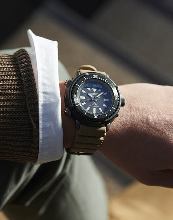 Японские мужские часы Seiko SNJ029P1 из коллекции Prospex стали перевоплощением легендарного хронографаХронографФункция позволяет измерять отрезки времени с особой точностью: часы, минуты, секунды. Верным признаком хронографа является наличие на циферблате 3 дополнительных окошек-счётчиков. 80-х годов, который предпочитал носить актёр Арнольд Шварценеггер. Наручные часы отражают брутальный, спортивный характер. Внешний облик позаимствован у предшественника Seiko H558-5009, выполненный в дайверском стиле. Аксессуар работает за счёт японского кварцевого калибра Seiko H851, получающего энергию за счёт источников света – реализация технологии . При полностью заряженном элементе питания модель проработает 6 месяцев без необходимости подзарядки. Противоударный корпусУдаропрочный корпусМеханизм заключён в корпус, выполненный из современных материалов, устойчивых к ударам, механическим повреждениям и падению с высоты: инновационный пластик, карбон, нержавеющая сталь, титан. имеет двойную конструкцию, где нержавеющая сталь 316L дополнительно защищена полимерными протекторами. Циферблат оснащён минеральным закаленным стеклом Hardlex, прочным и устойчивым к царапинам. Сохраняется водостойкость до 200 метров в соответствии со стандартом ISO 6425. Дисплей подсвечивается светодиодомСветодиодная подсветкаСветодиодная или LED-подсветка обеспечивает появление яркого холодного свечения за счёт LED-элементов - маленьких лампочек. Они потребляют минимальное количество энергии, чаще всего можно встретить 1 светодиод, в нижней части циферблата., стрелки и индексы имеют люминесцентную подсветкуЛюминесцентное покрытиеПозволяет считывать показания времени в темноте. Производители наносят на стрелки, часовые индексы, безель или поверхность циферблата светонакопительный состав, дающий холодное свечение.. Функции: будильник, секундомер, вечный календарьВечный календарьКлассическое часовое усложнение, представляющее собой календарь, рассчитанный на несколько лет вперёд (стандартно – до 2099 года). Определяет текущую дату, день недели, месяц.. Диаметр корпуса: 47,8 мм.