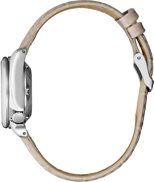 Механические часы с автоподзаводом и возможностью ручной подзаводки оснащены калибром 2R06, в котором используется 21 драгоценный камень. Механизм обеспечивает запас хода до 40 часов и дополнен функцией стоп-секунды для точной установки времени. Корпус изготовлен из нержавеющей стали и защищён минеральным стекломМинеральное стеклоМинеральное стекло представляет собой искусственно выращенный минерал кварца. Такое стекло отличается особой устойчивостью к повреждениям и царапинам. Уступает по некоторым качествам сапфировому стеклу. Hardlex, устойчивым к мелким повреждениям. Циферблат дополнен стрелками и метками с фирменным люминесцентным покрытиемЛюминесцентное покрытиеПозволяет считывать показания времени в темноте. Производители наносят на стрелки, часовые индексы, безель или поверхность циферблата светонакопительный состав, дающий холодное свечение. LumiBrite, обеспечивающим отличную читаемость даже в темноте. Часы обладают водонепроницаемостью , что соответствует защите на глубине до 100 метров, и имеют защиту от магнитных полей до 4800 А/м. Задняя крышка — завинчивающаяся, что обеспечивает дополнительную защиту механизма. Расстояние между ушками составляет 14 мм, что делает модель совместимой с различными типами ремешков. Ремешок из натуральной кожи добавляет модели элегантности и обеспечивает комфорт при ношении. Эти часы станут универсальным аксессуаром для тех, кто ценит сочетание технологичности, прочности и эстетики — идеальный выбор для повседневной носки и особых случаев.