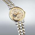 Модель Seiko SSA464J1 из коллекции Presage Japanese Garden — это элегантные автоматические часы, вдохновлённые эстетикой японских садов и философией дзен. Корпус диаметром 41,8 мм выполнен из нержавеющей стали с комбинированной полировкой и прозрачной задней крышкой. Водозащита составляет 30 метров — оптимально для повседневной носки. Фиксированный стальной безельБезельВнешний ободок, закрепляющий стекло. В спортивных часах так называется поворотное кольцо с делениями на циферблате, выполняет роль таймера – замеряет отрезки времени на шкале. Неподвижный безель – элемент декора. Однонаправленно вращающийся безель на дайверских часах позволяет фиксировать моменты погружения и выныривания на поверхность. с PVD-покрытиемPVDУльтратонкое покрытие наносится в технике вакуумного напыления, сочетает в себе нитрид титана особой прочности со слоем золота или оксида хрома. Несёт в себе декоративную или защитную функцию. подчёркивает гармоничные формы корпуса. Циферблат насыщенного цвета с тонкой текстурой напоминает волны гравия в японском саду. Открытое окно «open heart» на 9 часах позволяет наблюдать за работой механизма. В верхней части расположен индикатор запаса ходаШагомерШагоме́р или педо́метр — измерительный прибор для подсчёта количества сделанных шагов (или пар шагов) при ходьбе или беге.. Циферблат защищён двойным выпуклым сапфировым стекломСапфировое стеклоПрочный и надёжный материал из кристалла сапфира синтетического происхождения, характеризующийся особой твёрдостью и устойчивостью к царапинам и повреждениям. с внутренним антибликовым покрытиемАнтибликовое покрытиеСлой оксида металла в 0,13-0,3 микрон, благодаря которому стекло часов не бликует и не отражает свет. Антибликовое покрытие уменьшает отражение света в 10 раз, обеспечивая отличную читаемость показателей циферблата., устойчивым к царапинам и бликам. Внутри установлен автоматический калибр Seiko 4R39 с ручным подзаводом, функцией остановки секундной стрелки и запасом хода до 41 часа. Браслет выполнен из нержавеющей стали и оснащён удобной застёжкой «бабочка» с кнопкамиЗастёжка "бабочка"Такой вид застёжки дополняется предохранителями, помогающими избежать случайного раскрытия браслета. Обладают изящным исполнением. . Seiko — это стильное и сбалансированное решение для ценителей классики с японским характером, где сочетаются глубокий дизайн и надёжная механика.