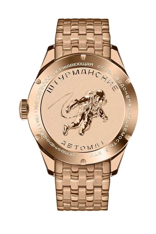 Мужские часы Штурманские Открытый космос NH34/1899058B - это воплощение элегантности и точности. Лимитированная серия — 3000 экземпляров. Корпус из нержавеющей стали диаметром 42 мм с PVD-покрытиемPVDУльтратонкое покрытие наносится в технике вакуумного напыления, сочетает в себе нитрид титана особой прочности со слоем золота или оксида хрома. Несёт в себе декоративную или защитную функцию. идеально сбалансирован и элегантен. Минеральное стеклоМинеральное стеклоМинеральное стекло представляет собой искусственно выращенный минерал кварца. Такое стекло отличается особой устойчивостью к повреждениям и царапинам. Уступает по некоторым качествам сапфировому стеклу. защищает циферблат от царапин. Стальной браслет на застёжке-бабочке с кнопкамиЗастёжка "бабочка"Такой вид застёжки дополняется предохранителями, помогающими избежать случайного раскрытия браслета. Обладают изящным исполнением. идеально дополняют дизайн часов, обеспечивая комфортное ношение. Стрелки и метки на циферблате имеют люминесцентное покрытиеЛюминесцентное покрытиеПозволяет считывать показания времени в темноте. Производители наносят на стрелки, часовые индексы, безель или поверхность циферблата светонакопительный состав, дающий холодное свечение. позволяющее легко определять время даже в темноте. Запас хода 41 часов. Рифленая заводная головка. Окошко даты в накладной рамке находится в положении 3 часа. Индивидуальная нумерация. Задняя крышка украшена барельефом с изображением космонавта в открытом космосе, созданным по мотивам картины Алексея Леонова.