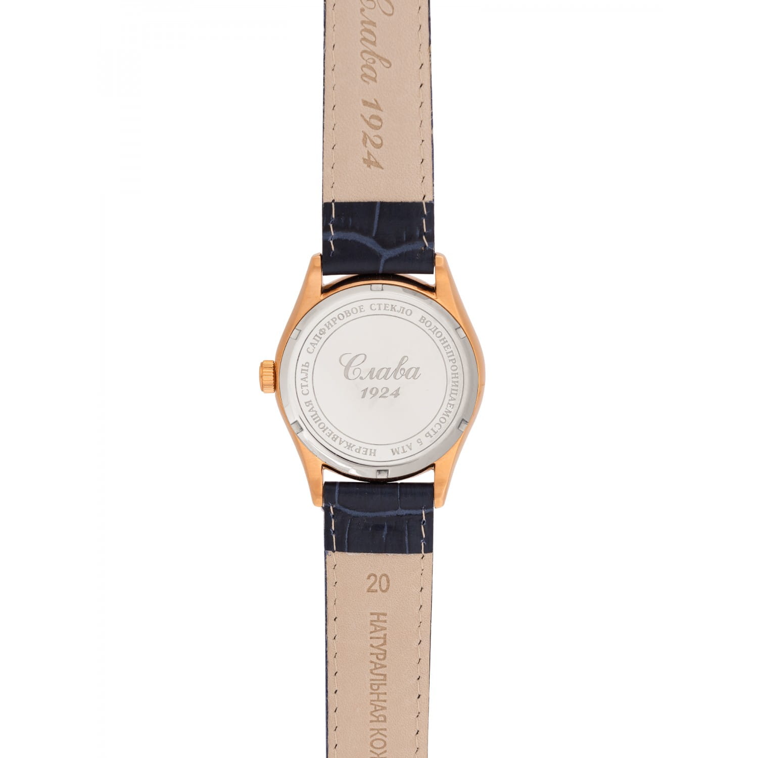 Российские механические часы с автоподзаводом Слава Премьер 1493275/300-8215. Корпус часов выполнен из стали с IP-покрытиемIP-покрытиеМетод ионного напыления. Демонстрирует повышенную устойчивость к истиранию, окислению и химическим веществам. Под воздействием высокого давления и температуры около 1500°C молекулы металла надёжно соединяются с частицами корпуса часов., что придает им долговечность и устойчивость к внешним воздействиям. Сапфировое стеклоСапфировое стеклоПрочный и надёжный материал из кристалла сапфира синтетического происхождения, характеризующийся особой твёрдостью и устойчивостью к царапинам и повреждениям.. Класс водозащиты часов составляет 50 метров, позволит защитить корпус от случайных брызг или капель дождя. Кожаный браслет с стандартной застежкой обеспечивает комфортное ношение и надежную фиксацию на запястье. Эти часы идеально подойдут для повседневного использования, сочетая в себе стиль, надежность и функциональность. Окошко даты находится в положении 3 часа.