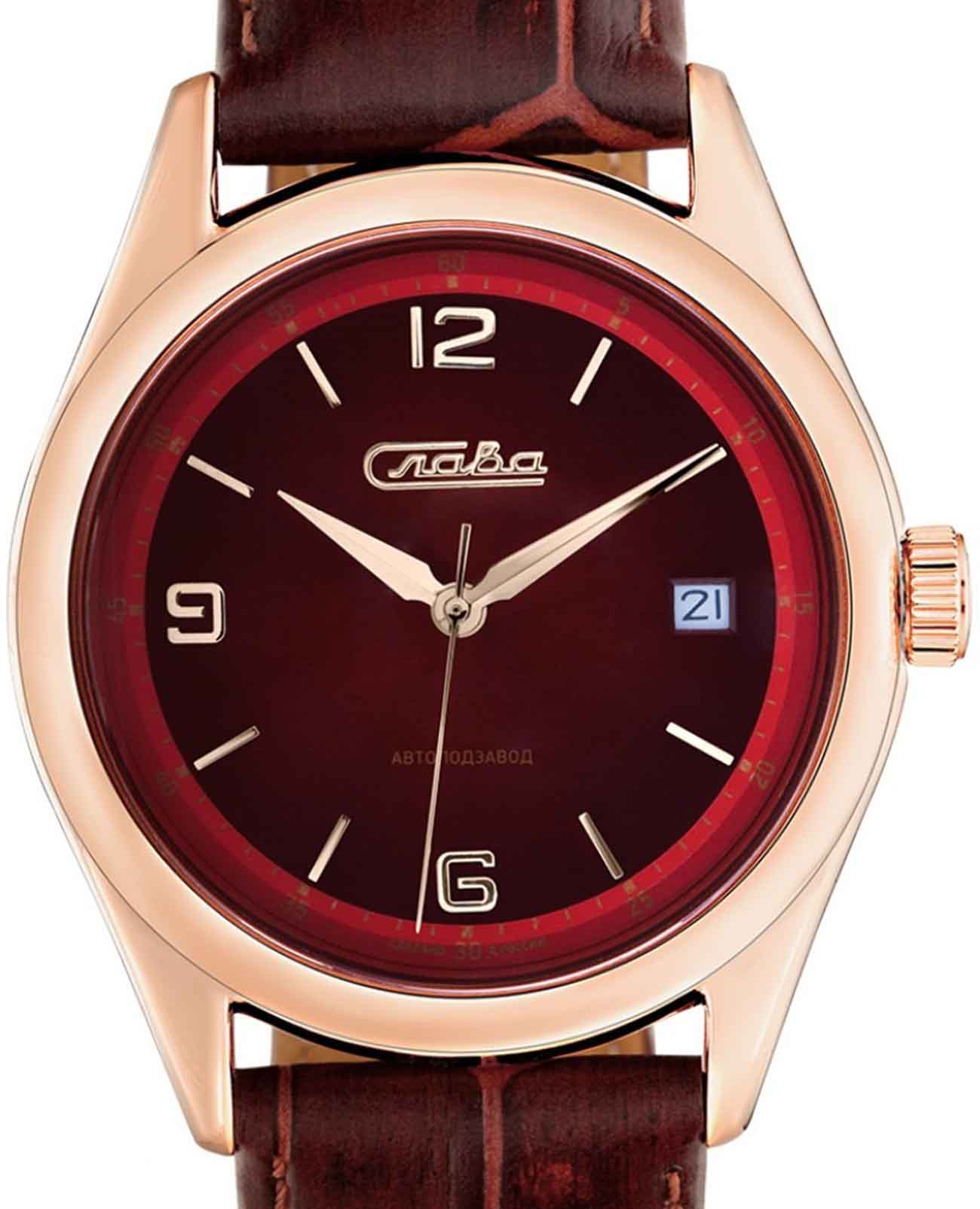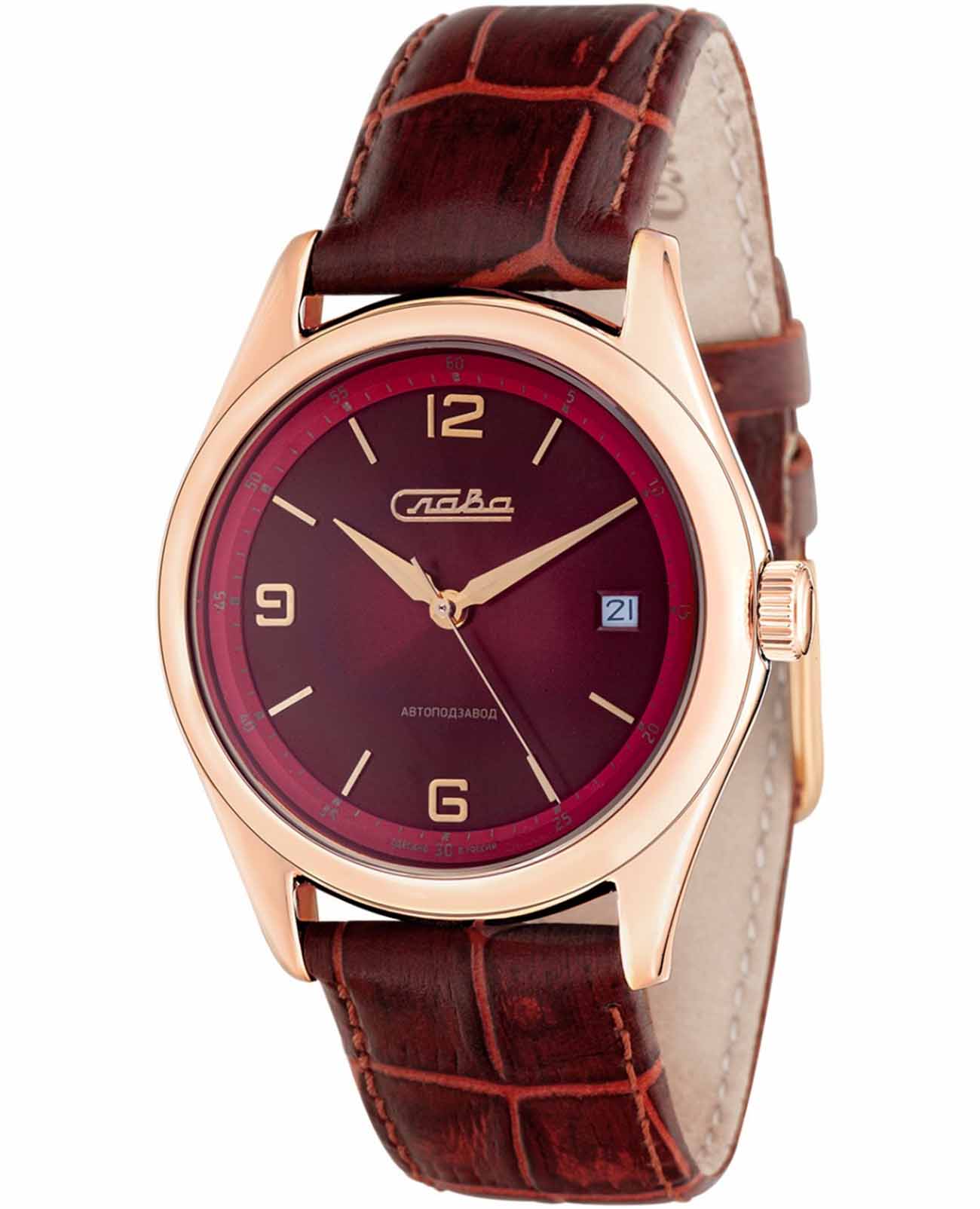 Российские механические наручные часы Слава Сенат 1493287/300-8215, которые станут идеальным аксессуаром для повседневного ношения. Эти часы сочетают в себе элегантность и практичность, предлагая безупречный стиль и надежность. Оснащенные механизмом Miyota 8215 с автоподзаводом, они обеспечивают точность и долговечность. Стальной корпус с IP-покрытиемIP-покрытиеМетод ионного напыления. Демонстрирует повышенную устойчивость к истиранию, окислению и химическим веществам. Под воздействием высокого давления и температуры около 1500°C молекулы металла надёжно соединяются с частицами корпуса часов. и сапфировым стекломСапфировое стеклоПрочный и надёжный материал из кристалла сапфира синтетического происхождения, характеризующийся особой твёрдостью и устойчивостью к царапинам и повреждениям. защищает бордовый циферблат с арабскими цифрами и метками в виде штрихов. Часы также имеют календарь с окошком даты на 3 часах и водозащиту до 50WR, что делает их надежными в различных условиях. Текстурированный кожаный бордовый ремешок с классической застежкой завершает этот изысканный образ.