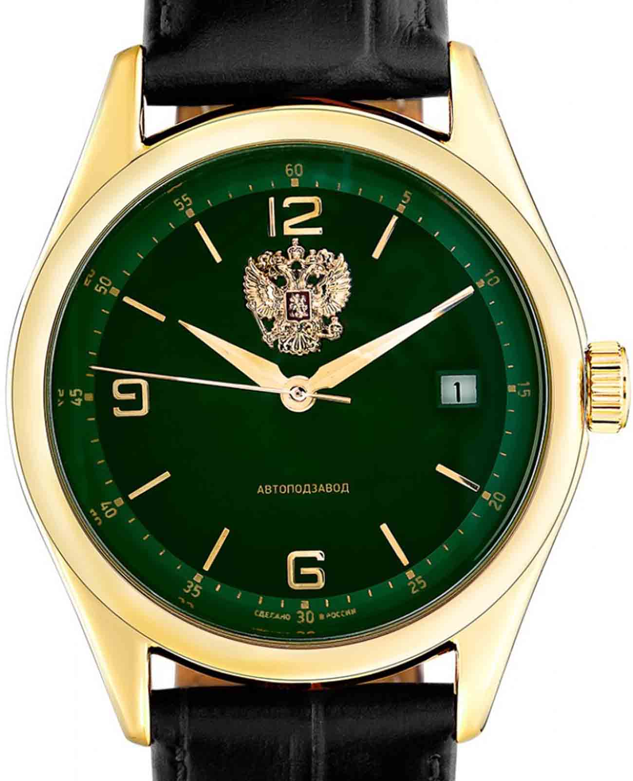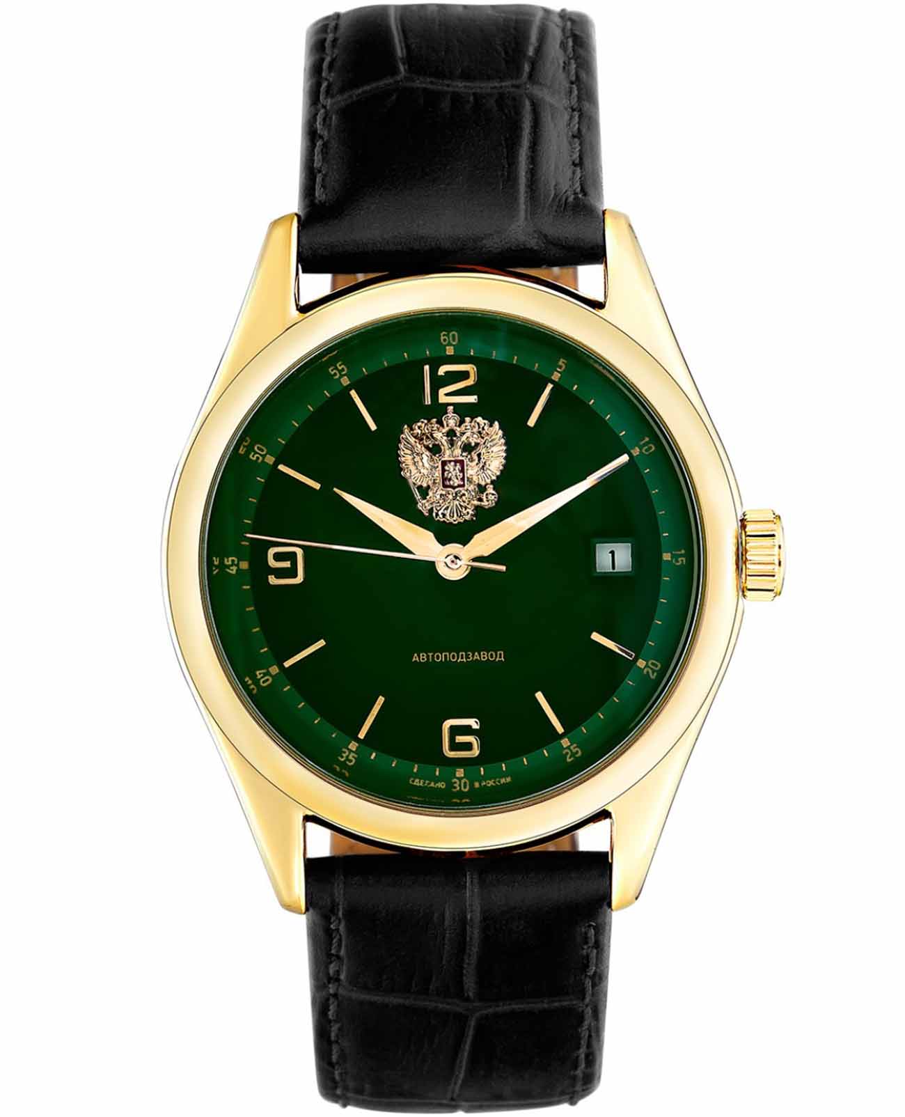 Российские механические наручные часы Слава Сенат 1499286/300-8215, которые станут идеальным аксессуаром для повседневного ношения. Эти часы сочетают в себе элегантность и практичность, предлагая безупречный стиль и надежность. Оснащенные механизмом Miyota 8215 с автоподзаводом, они обеспечивают точность и долговечность. Стальной корпус с IP-покрытиемIP-покрытиеМетод ионного напыления. Демонстрирует повышенную устойчивость к истиранию, окислению и химическим веществам. Под воздействием высокого давления и температуры около 1500°C молекулы металла надёжно соединяются с частицами корпуса часов. и сапфировым стекломСапфировое стеклоПрочный и надёжный материал из кристалла сапфира синтетического происхождения, характеризующийся особой твёрдостью и устойчивостью к царапинам и повреждениям. защищает зленый циферблат с арабскими цифрами и метками в виде штрихов. На циферблате изображены герб Российской Федерации. Часы также имеют календарь с окошком даты на 3 часах и водозащиту до 50WR, что делает их надежными в различных условиях. Текстурированный кожаный черный ремешок с классической застежкой завершает этот изысканный образ.