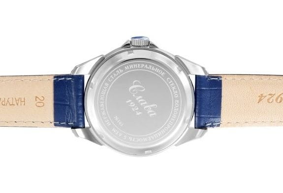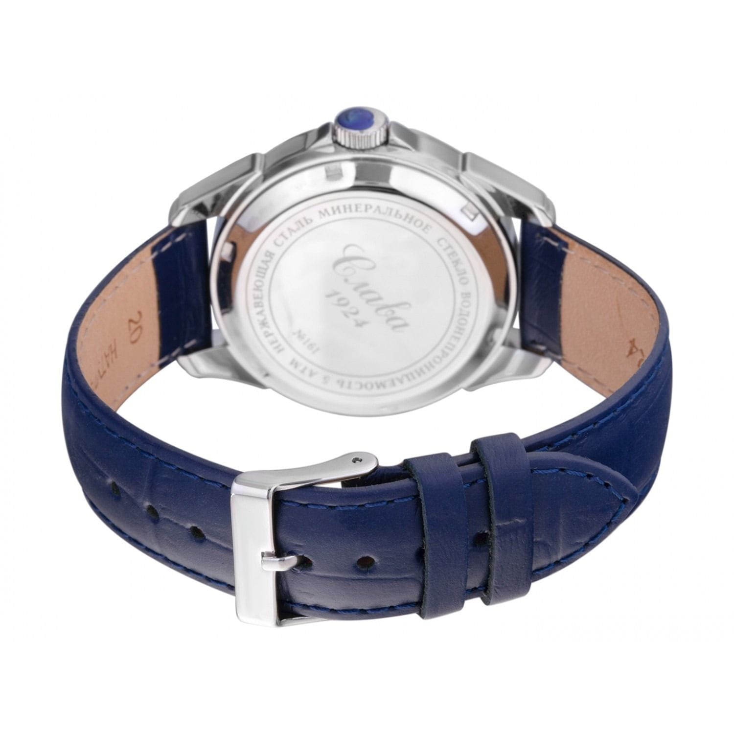 Российские механические часы Слава Традиция 1610836/300-8215, которые поддерживаются автоподзаводом, созданы для тех, кто ценит стиль и надежность. Корпус часов изготовлен из стали, что придает им элегантный вид. Синий циферблат украшен гербом России, добавляя патриотичную нотку и эксклюзивность. Стрелки с люминесцентным покрытиемЛюминесцентное покрытиеПозволяет считывать показания времени в темноте. Производители наносят на стрелки, часовые индексы, безель или поверхность циферблата светонакопительный состав, дающий холодное свечение. облегчают чтение времени даже в условиях слабого освещения. Минеральное стеклоМинеральное стеклоМинеральное стекло представляет собой искусственно выращенный минерал кварца. Такое стекло отличается особой устойчивостью к повреждениям и царапинам. Уступает по некоторым качествам сапфировому стеклу. с сапфировым напылением защищает циферблат от царапин и повреждений, сохраняя идеальный внешний вид на протяжении долгого времени. Часы также имеют календарь с окошком даты на 3 часах и водозащиту до 50WR, что делает их надежными в различных условиях. Текстурированный кожаный ремешок с классической застежкой завершает этот изысканный образ. Текстурированный кожаный ремешок с классической застежкой завершает этот изысканный образ.