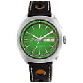 Российские часы Слава Мир 9010576/300-2427 оснащены механизмом Слава 2427, что обеспечивает исключительную надежность и точность хода. Корпус часов выполнен из нержавеющей стали, что придает им долговечность и устойчивость к внешним воздействиям. Сапфировое стеклоСапфировое стеклоПрочный и надёжный материал из кристалла сапфира синтетического происхождения, характеризующийся особой твёрдостью и устойчивостью к царапинам и повреждениям. защищает зеленый циферблат от царапин и повреждений, обеспечивая долговечность и надежность изделия. Эти часы идеально подойдут для повседневного использования, сочетая в себе стиль, надежность и функциональность. Стрелки и метки с люминесцентным покрытиемЛюминесцентное покрытиеПозволяет считывать показания времени в темноте. Производители наносят на стрелки, часовые индексы, безель или поверхность циферблата светонакопительный состав, дающий холодное свечение., что облегчает чтение времени даже в условиях слабого освещения. Окошки дня недели и даты находятся в положении 3 часа. Часы комплектуются кожаным перфорированным ремешком, прошитым белой нитью и оснащенным классической застежкой, обеспечивая комфорт и надежность в носке. Класс водозащиты часов составляет 100 метров, позволит плавать, нырять и заниматься другими водными видами спорта.
