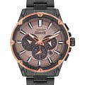 Циферблат серого цвета украшен стрелками с люминесцентным покрытиемЛюминесцентное покрытиеПозволяет считывать показания времени в темноте. Производители наносят на стрелки, часовые индексы, безель или поверхность циферблата светонакопительный состав, дающий холодное свечение., что обеспечивает читаемость времени даже в условиях слабого освещения. Для защиты циферблата используется минеральное стеклоМинеральное стеклоМинеральное стекло представляет собой искусственно выращенный минерал кварца. Такое стекло отличается особой устойчивостью к повреждениям и царапинам. Уступает по некоторым качествам сапфировому стеклу., устойчивое к царапинам и повреждениям. Браслет изготовлен из суперметалла с IP-покрытиемIP-покрытиеМетод ионного напыления. Демонстрирует повышенную устойчивость к истиранию, окислению и химическим веществам. Под воздействием высокого давления и температуры около 1500°C молекулы металла надёжно соединяются с частицами корпуса часов. на раскладной застежкойРаскладная застёжкаТакой тип застёжки используется только на браслетах из металла. Она никогда не раскрывается полностью, происходит разделение на 2 и более частей. Раскладывающая застёжка снизит вероятность потери часов к минимуму., гарантирующей удобство и надежность при ношении.
