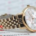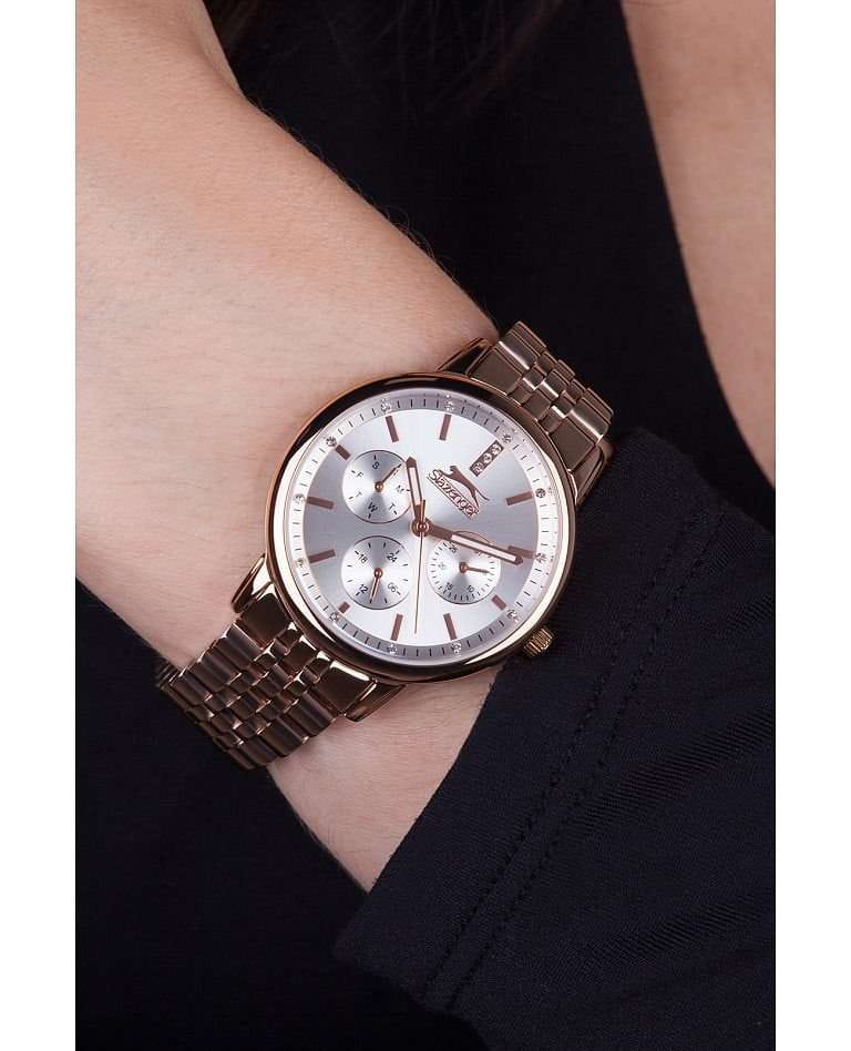 Часы Slazenger SL.09.2050.4.02 — это элегантное сочетание стиля и функциональности, созданное специально для женщин. Их изысканный серебристый циферблат и корпус с безелемБезельВнешний ободок, закрепляющий стекло. В спортивных часах так называется поворотное кольцо с делениями на циферблате, выполняет роль таймера – замеряет отрезки времени на шкале. Неподвижный безель – элемент декора. Однонаправленно вращающийся безель на дайверских часах позволяет фиксировать моменты погружения и выныривания на поверхность. из суперметалла с IP-покрытиемIP-покрытиеМетод ионного напыления. Демонстрирует повышенную устойчивость к истиранию, окислению и химическим веществам. Под воздействием высокого давления и температуры около 1500°C молекулы металла надёжно соединяются с частицами корпуса часов. придают часам современный и утонченный вид. Внутри скрыт надежный кварцевый механизм, который гарантирует точность и долговечность. Минеральное стеклоМинеральное стеклоМинеральное стекло представляет собой искусственно выращенный минерал кварца. Такое стекло отличается особой устойчивостью к повреждениям и царапинам. Уступает по некоторым качествам сапфировому стеклу. защищает часы от царапин, а украшение из фианитов добавляет изысканный акцент.  Люминесцентное покрытиеЛюминесцентное покрытиеПозволяет считывать показания времени в темноте. Производители наносят на стрелки, часовые индексы, безель или поверхность циферблата светонакопительный состав, дающий холодное свечение. на стрелках позволяют легко считывать время даже в темноте. Функциональность часов дополнена 24-часовым указателем времени, календарем даты и дня недели. Браслет из суперметалла с IP-покрытиемIP-покрытиеМетод ионного напыления. Демонстрирует повышенную устойчивость к истиранию, окислению и химическим веществам. Под воздействием высокого давления и температуры около 1500°C молекулы металла надёжно соединяются с частицами корпуса часов. и раскладной застёжкойРаскладная застёжкаТакой тип застёжки используется только на браслетах из металла. Она никогда не раскрывается полностью, происходит разделение на 2 и более частей. Раскладывающая застёжка снизит вероятность потери часов к минимуму. подчеркивает женственность дизайна и обеспечивает комфорт в носке. Диаметр корпуса составляет 35 мм, а толщина — 9 мм, что делает их идеальным аксессуаром для любой стильной женщины. Водозащита уровня 3 ATM позволяет не беспокоиться о случайных брызгах.