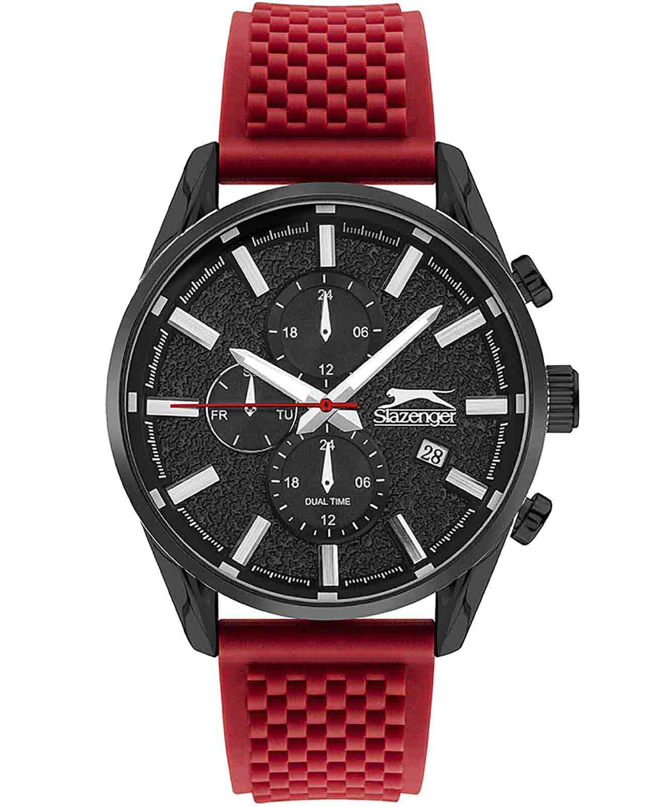 Часы Slazenger SL.09.2060.2.05 представляют собой стильное и функциональное дополнение к вашему образу. Их черный циферблат и корпус с безелемБезельВнешний ободок, закрепляющий стекло. В спортивных часах так называется поворотное кольцо с делениями на циферблате, выполняет роль таймера – замеряет отрезки времени на шкале. Неподвижный безель – элемент декора. Однонаправленно вращающийся безель на дайверских часах позволяет фиксировать моменты погружения и выныривания на поверхность. из суперметалла с IP-покрытиемIP-покрытиеМетод ионного напыления. Демонстрирует повышенную устойчивость к истиранию, окислению и химическим веществам. Под воздействием высокого давления и температуры около 1500°C молекулы металла надёжно соединяются с частицами корпуса часов. создают элегантный и современный вид, который подчеркнет вашу индивидуальность. Эти мужские часы оснащены кварцевым механизмом, обеспечивающим точность хода. Минеральное стеклоМинеральное стеклоМинеральное стекло представляет собой искусственно выращенный минерал кварца. Такое стекло отличается особой устойчивостью к повреждениям и царапинам. Уступает по некоторым качествам сапфировому стеклу. защищает циферблат от царапин, а люминесцентное покрытиеЛюминесцентное покрытиеПозволяет считывать показания времени в темноте. Производители наносят на стрелки, часовые индексы, безель или поверхность циферблата светонакопительный состав, дающий холодное свечение. на стрелках позволяет легко считывать время даже в темноте. Функциональность часов дополнена вторым часовым поясомВторой часовой поясФункция, позволяющая отображать время двух часовых поясов одновременно., 24-часовым указателем времени, календарем даты в районе 4 часа и дня недели. Красный браслет из силикона гармонично дополняет общий дизайн. Размер корпуса составляет 44 мм в диаметре и 12 мм в толщину, что делает их удобными для повседневного ношения. А водозащита уровня 5 ATM делает их надежными спутниками даже в условиях повышенной влажности.