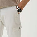 Часы Slazenger SL.09.2215.2.02 представляют собой стильные мужские наручные часы, которые сочетают в себе элегантный дизайн и функциональность. Изготовленные в Англии, эти кварцевые часы оснащены прочным металлическим корпусом и металлическим браслетом с раскладной застёжкойРаскладная застёжкаТакой тип застёжки используется только на браслетах из металла. Она никогда не раскрывается полностью, происходит разделение на 2 и более частей. Раскладывающая застёжка снизит вероятность потери часов к минимуму., который обеспечивает надежную фиксацию на запястье. Минеральное стеклоМинеральное стеклоМинеральное стекло представляет собой искусственно выращенный минерал кварца. Такое стекло отличается особой устойчивостью к повреждениям и царапинам. Уступает по некоторым качествам сапфировому стеклу. защищает черный циферблат от царапин, а водозащита WR 50 позволяет использовать их в условиях повышенной влажности. Диаметр корпуса составляет 43 мм, а толщина — 14 мм, что делает часы удобными для ежедневного ношения. Ширина ремешка — 22 мм, что обеспечивает комфорт и стильный вид на руке. Дополнительные функции включают отображение второго часового поясаВторой часовой поясФункция, позволяющая отображать время двух часовых поясов одновременно., дня недели и текущего времени в 24-часовом формате, а также наличие окошка даты для удобства пользователя. Стрелки снабжены люминесцентным покрытиемЛюминесцентное покрытиеПозволяет считывать показания времени в темноте. Производители наносят на стрелки, часовые индексы, безель или поверхность циферблата светонакопительный состав, дающий холодное свечение., что позволяет легко считывать время в темноте. Часы также оснащены тахиметромТахиметрРазмеченная шкала, располагается на ободке или безеле часов. Тахиметр позволяет рассчитать скорость на определённом участке пути, расстояние измеряется в километрах или милях., что добавляет им функциональности и может быть полезно для измерения скорости.