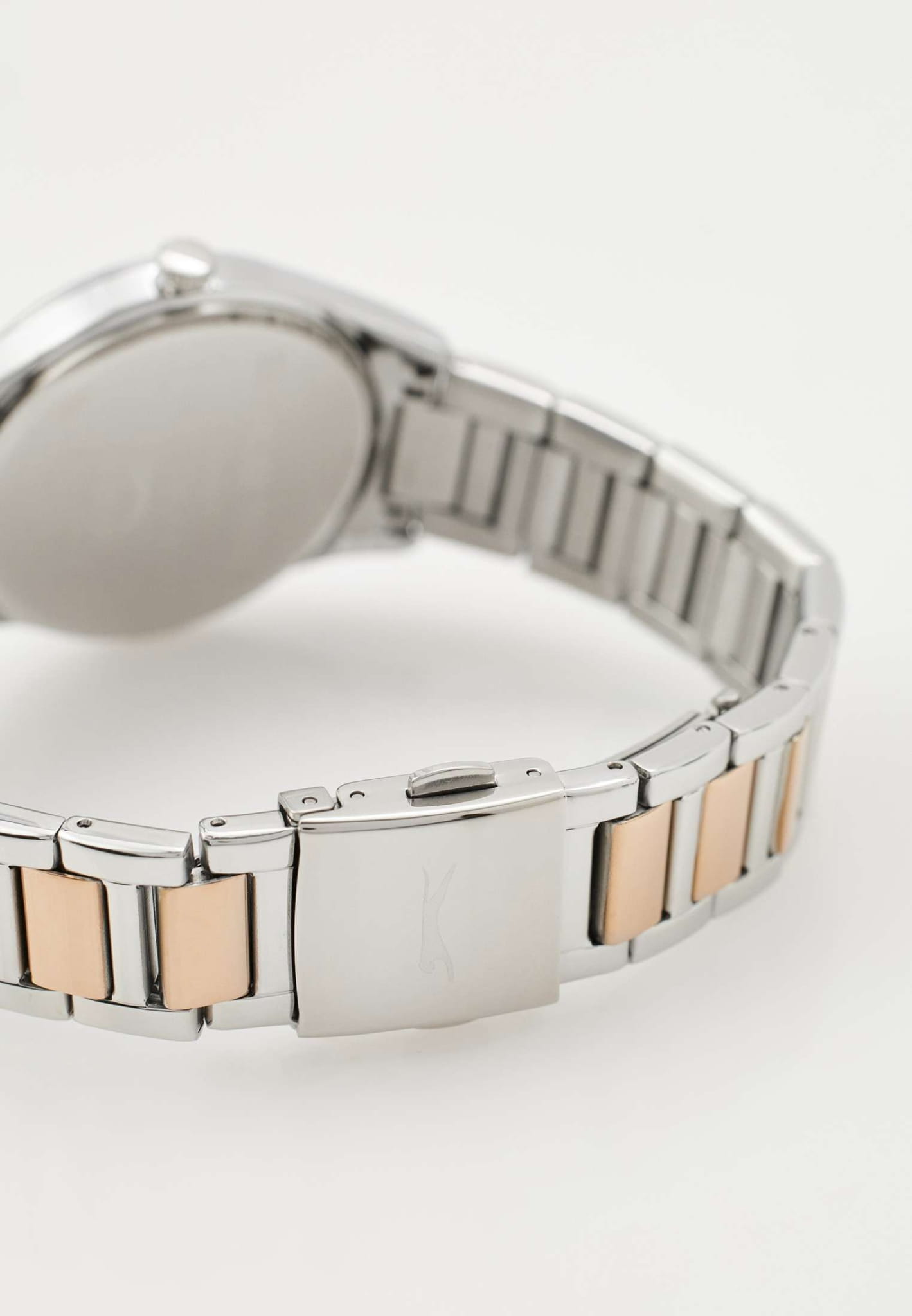 Часы Slazenger SL.09.2229.4.02 — это стильная и элегантная модель, созданная для современных женщин, ценящих изысканный дизайн и функциональность. Корпус выполнен из прочного металла серебристого цвета, что придает аксессуару особую утонченность. Циферблат украшен мерцающими кристаллами, а также оснащён дополнительными малыми циферблатами, которые отображают дату, день недели и время в 24-часовом формате. Минеральное стеклоМинеральное стеклоМинеральное стекло представляет собой искусственно выращенный минерал кварца. Такое стекло отличается особой устойчивостью к повреждениям и царапинам. Уступает по некоторым качествам сапфировому стеклу. надежно защищает часы от царапин, а водозащита уровня WR 30 позволяет не беспокоиться о случайном попадании влаги. Металлический браслет с частичным розово-золотистым IP-покрытиемIP-покрытиеМетод ионного напыления. Демонстрирует повышенную устойчивость к истиранию, окислению и химическим веществам. Под воздействием высокого давления и температуры около 1500°C молекулы металла надёжно соединяются с частицами корпуса часов. снабжён удобной раскладной застёжкойРаскладная застёжкаТакой тип застёжки используется только на браслетах из металла. Она никогда не раскрывается полностью, происходит разделение на 2 и более частей. Раскладывающая застёжка снизит вероятность потери часов к минимуму.. Диаметр корпуса составляет 36 мм, толщина — 9 мм, а вес — 82 грамма, что обеспечивает комфортное ношение в течение всего дня. Часы оснащены кварцевым механизмом.
