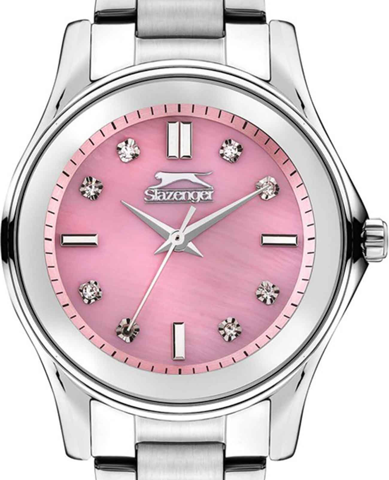 Женские наручные часы Slazenger SL.09.2235.3.08 сочетают в себе классический дизайн и надежность современных технологий. Модель обладает круглым корпусом диаметром 32 мм, изготовленным из прочного металла, что обеспечивает высокую устойчивость к внешним воздействиям. Индексы украшены фианитами. Браслет выполнен из металла с раскладной застёжкойРаскладная застёжкаТакой тип застёжки используется только на браслетах из металла. Она никогда не раскрывается полностью, происходит разделение на 2 и более частей. Раскладывающая застёжка снизит вероятность потери часов к минимуму., гарантирующей комфортное ношение и безопасность. Циферблат перламутрового розового цвета декорирован серебристыми стрелками и индексами. Для защиты используется минеральное стеклоМинеральное стеклоМинеральное стекло представляет собой искусственно выращенный минерал кварца. Такое стекло отличается особой устойчивостью к повреждениям и царапинам. Уступает по некоторым качествам сапфировому стеклу., обеспечивающее прочную защиту от царапин. Часы работают на кварцевом механизме, что гарантирует точное время без необходимости подзаводки. Водонепроницаемость часов достигает 3 атмосфер, что позволяет использовать их при мытье рук или хождении под мелким дождем, однако не рекомендуется для плавания или других водных видов спорта. Вес модели составляет 72 грамма.