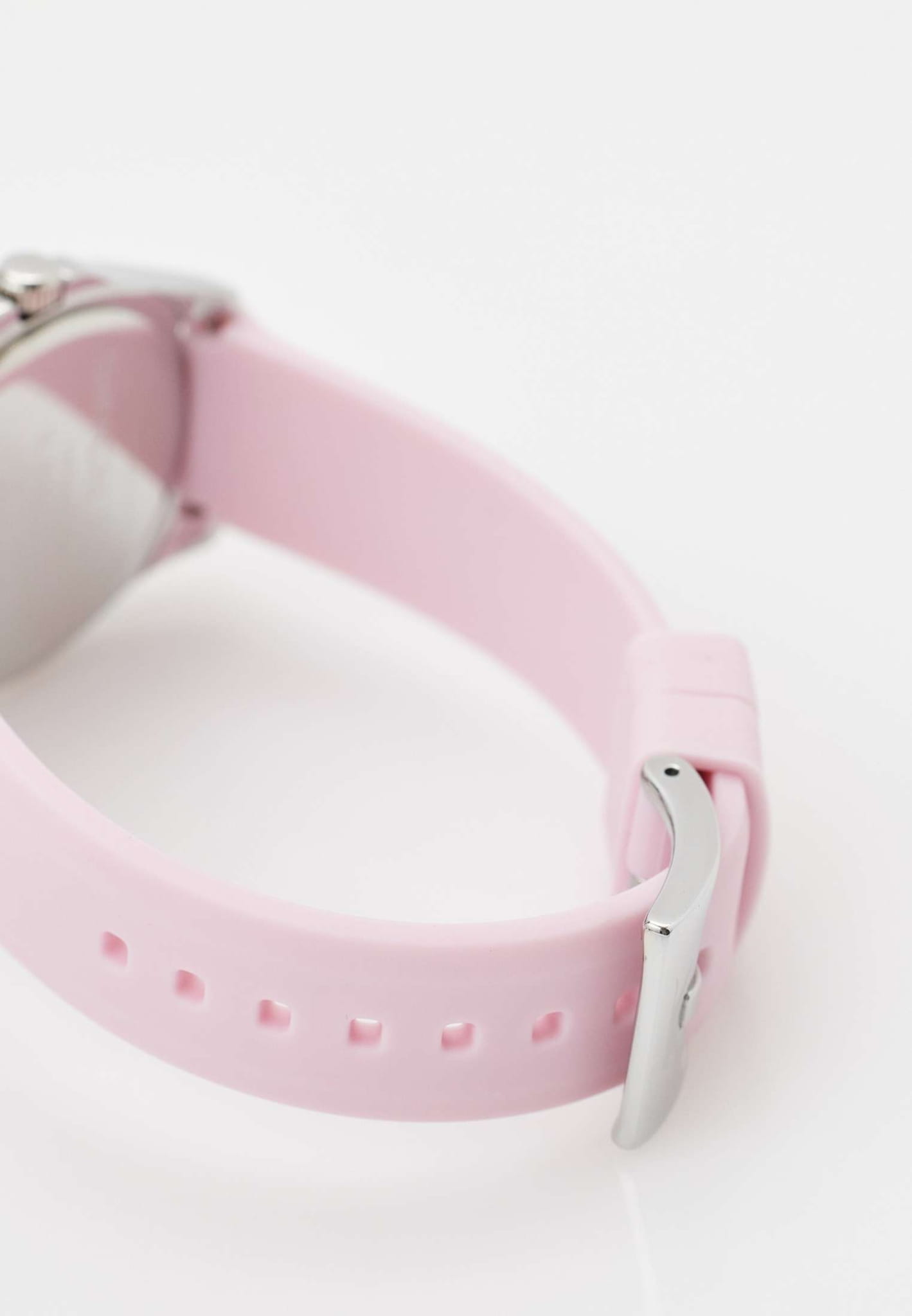 Часы Slazenger SL.09.2239.3.07 – это изысканный аксессуар, который станет стильным акцентом любого образа. Модель оснащена надежным кварцевым механизмом. Корпус из прочного металла размером 34х34 мм украшен россыпью сверкающих фианитов по безелюБезельВнешний ободок, закрепляющий стекло. В спортивных часах так называется поворотное кольцо с делениями на циферблате, выполняет роль таймера – замеряет отрезки времени на шкале. Неподвижный безель – элемент декора. Однонаправленно вращающийся безель на дайверских часах позволяет фиксировать моменты погружения и выныривания на поверхность., что придает часам особое сияние и элегантность. Розовый циферблат с логотипом бренда защищен стойким к царапинам минеральным стекломМинеральное стеклоМинеральное стекло представляет собой искусственно выращенный минерал кварца. Такое стекло отличается особой устойчивостью к повреждениям и царапинам. Уступает по некоторым качествам сапфировому стеклу.. Четкие часовые метки в виде лаконичных штрихов и крупная арабская цифра 12 обеспечивают удобство чтения времени. Заводная головка с рифлением дополнена защитой для повышения долговечности. Резиновый нежно-розовый ремешок шириной 18 мм надежно фиксируется на запястье с помощью классической застежки. Для удобства использования в темное время суток предусмотрено люминесцентное покрытиеЛюминесцентное покрытиеПозволяет считывать показания времени в темноте. Производители наносят на стрелки, часовые индексы, безель или поверхность циферблата светонакопительный состав, дающий холодное свечение. стрелок. Водозащита 30WR позволяет не беспокоиться о случайных брызгах. Вес изделия составляет 43 грамма, что делает часы комфортными для ежедневного ношения. Эти часы идеально подойдут для тех, кто ценит гармонию стиля, качества и функциональности.