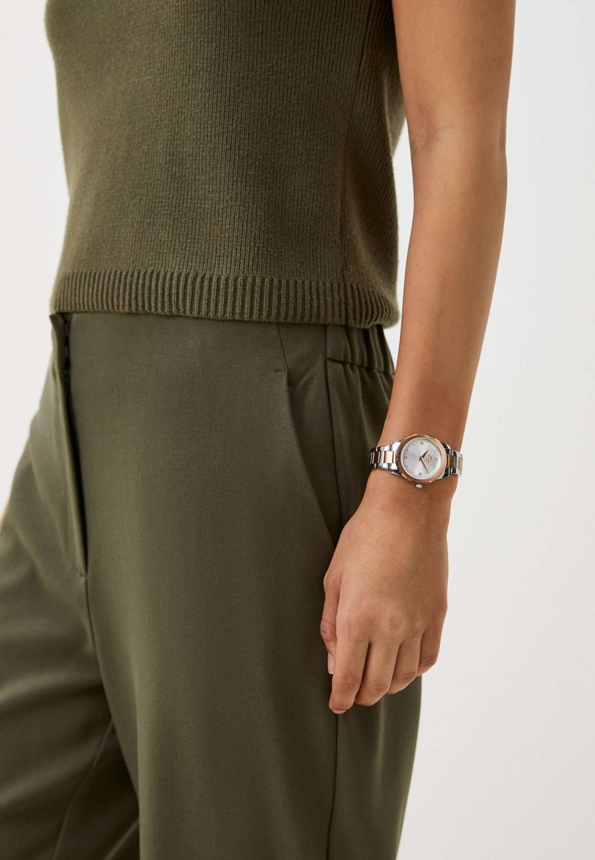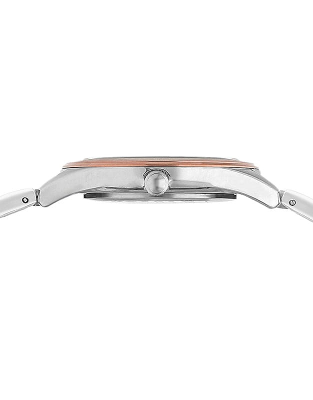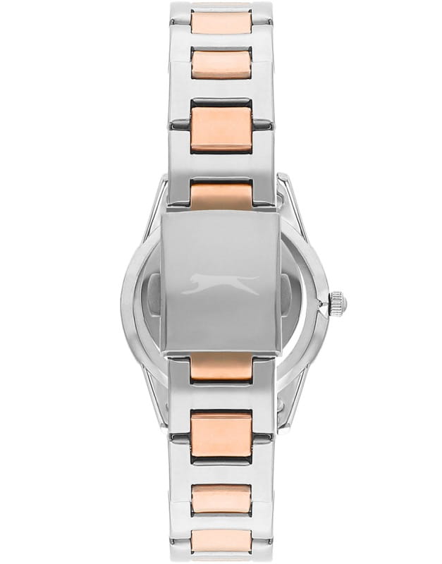 Часы Slazenger SL.09.2253.3.03 — это стильная и элегантная модель, созданная для тех, кто ценит утонченность и надежность. Корпус выполнен из прочного металла, а изящный серебристый браслет с частичным розово-золотистым IP-покрытиемIP-покрытиеМетод ионного напыления. Демонстрирует повышенную устойчивость к истиранию, окислению и химическим веществам. Под воздействием высокого давления и температуры около 1500°C молекулы металла надёжно соединяются с частицами корпуса часов. оснащён удобной раскладной застёжкойРаскладная застёжкаТакой тип застёжки используется только на браслетах из металла. Она никогда не раскрывается полностью, происходит разделение на 2 и более частей. Раскладывающая застёжка снизит вероятность потери часов к минимуму.. На безельБезельВнешний ободок, закрепляющий стекло. В спортивных часах так называется поворотное кольцо с делениями на циферблате, выполняет роль таймера – замеряет отрезки времени на шкале. Неподвижный безель – элемент декора. Однонаправленно вращающийся безель на дайверских часах позволяет фиксировать моменты погружения и выныривания на поверхность. нанесено розово-золотистое IP-покрытиеIP-покрытиеМетод ионного напыления. Демонстрирует повышенную устойчивость к истиранию, окислению и химическим веществам. Под воздействием высокого давления и температуры около 1500°C молекулы металла надёжно соединяются с частицами корпуса часов..  Минеральное стеклоМинеральное стеклоМинеральное стекло представляет собой искусственно выращенный минерал кварца. Такое стекло отличается особой устойчивостью к повреждениям и царапинам. Уступает по некоторым качествам сапфировому стеклу. защищает серебристый циферблат, украшенный сияющими кристаллами, придающими аксессуару особый шарм. Кварцевый механизм обеспечивает точность хода, а водозащита класса WR 30 позволяет не беспокоиться о случайных брызгах. Диаметр корпуса составляет 33 мм, ширина браслета — 16 мм, толщина корпуса — 8 мм, что делает эти часы аккуратными и комфортными для повседневной носки. Модель весит 70 грамм. Часы прекрасно дополнят как деловой, так и повседневный образ, подчеркивая индивидуальность своей обладательницы.