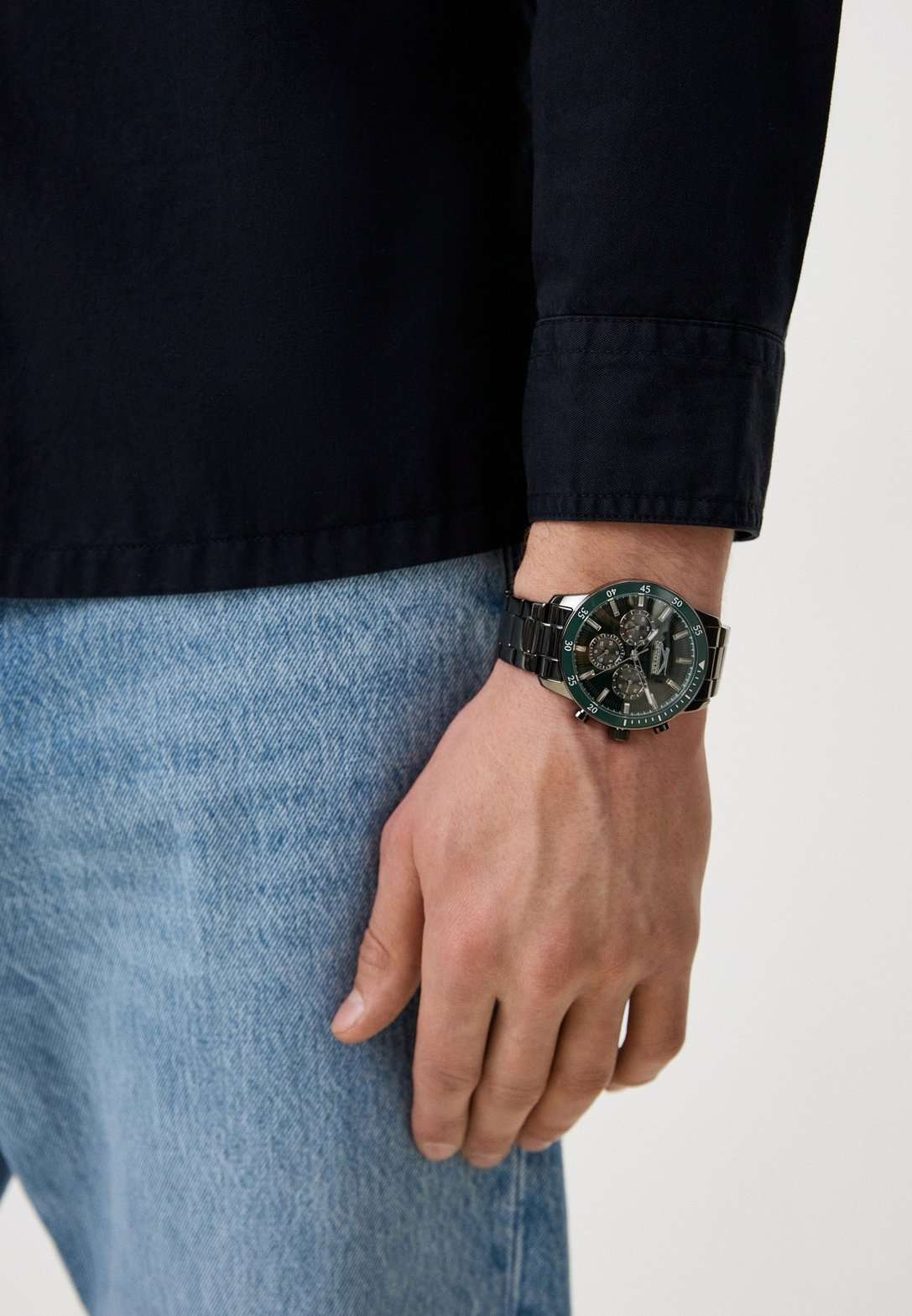 Часы Slazenger SL.09.2260.2.02 сочетают в себе выразительный дизайн и практичность, делая их отличным выбором для современного мужчины. Корпус и браслет выполнены из суперметалла с черным IP-покрытиеIP-покрытиеМетод ионного напыления. Демонстрирует повышенную устойчивость к истиранию, окислению и химическим веществам. Под воздействием высокого давления и температуры около 1500°C молекулы металла надёжно соединяются с частицами корпуса часов. — прочного сплава на основе меди с низким содержанием цинка и никеля, что обеспечивает долговечность изделия. На безельБезельВнешний ободок, закрепляющий стекло. В спортивных часах так называется поворотное кольцо с делениями на циферблате, выполняет роль таймера – замеряет отрезки времени на шкале. Неподвижный безель – элемент декора. Однонаправленно вращающийся безель на дайверских часах позволяет фиксировать моменты погружения и выныривания на поверхность. нанесено зеленое IP-покрытиеIP-покрытиеМетод ионного напыления. Демонстрирует повышенную устойчивость к истиранию, окислению и химическим веществам. Под воздействием высокого давления и температуры около 1500°C молекулы металла надёжно соединяются с частицами корпуса часов., что придает аксессуару утончённый и универсальный внешний вид. Модель оснащена точным кварцевым механизмом, защищённым минеральным стекломМинеральное стеклоМинеральное стекло представляет собой искусственно выращенный минерал кварца. Такое стекло отличается особой устойчивостью к повреждениям и царапинам. Уступает по некоторым качествам сапфировому стеклу.. На зеленом циферблате размещены дополнительные индикаторы: 24-часовой формат времени, дата и день недели. Класс водозащиты 5 бар позволяет не беспокоиться о брызгах и дожде. Диаметр корпуса составляет 45 мм, толщина — 12 мм, что придаёт часам солидный и современный вид. Стрелки с люминесцентным покрытиемЛюминесцентное покрытиеПозволяет считывать показания времени в темноте. Производители наносят на стрелки, часовые индексы, безель или поверхность циферблата светонакопительный состав, дающий холодное свечение. удобно подсвечиваются в темноте после зарядки на свету. Стальной браслет с раскладной застёжкойРаскладная застёжкаТакой тип застёжки используется только на браслетах из металла. Она никогда не раскрывается полностью, происходит разделение на 2 и более частей. Раскладывающая застёжка снизит вероятность потери часов к минимуму. обеспечивает комфортную посадку. Модель станет надёжным спутником как на каждый день, так и для особых случаев, а также превосходно подойдёт в качестве подарка.