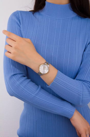 Женские кварцевые часы Slazenger — элегантный аксессуар с гармоничным дизайном и продуманной конструкцией. Корпус диаметром 35 мм и толщиной 8,5 мм выполнен из суперметалла. БезельБезельВнешний ободок, закрепляющий стекло. В спортивных часах так называется поворотное кольцо с делениями на циферблате, выполняет роль таймера – замеряет отрезки времени на шкале. Неподвижный безель – элемент декора. Однонаправленно вращающийся безель на дайверских часах позволяет фиксировать моменты погружения и выныривания на поверхность. с IP-покрытиемIP-покрытиеМетод ионного напыления. Демонстрирует повышенную устойчивость к истиранию, окислению и химическим веществам. Под воздействием высокого давления и температуры около 1500°C молекулы металла надёжно соединяются с частицами корпуса часов.. Циферблат серебристого цвета оформлен индексами и стрелками. Циферблат защищён минеральным стекломМинеральное стеклоМинеральное стекло представляет собой искусственно выращенный минерал кварца. Такое стекло отличается особой устойчивостью к повреждениям и царапинам. Уступает по некоторым качествам сапфировому стеклу.. Механизм — кварцевый калибр Miyota 2035. Браслет из суперметалла с IP-покрытиемIP-покрытиеМетод ионного напыления. Демонстрирует повышенную устойчивость к истиранию, окислению и химическим веществам. Под воздействием высокого давления и температуры около 1500°C молекулы металла надёжно соединяются с частицами корпуса часов.., обеспечивает цельный и утончённый образ. Часы оснащены раскладной застёжкойРаскладная застёжкаТакой тип застёжки используется только на браслетах из металла. Она никогда не раскрывается полностью, происходит разделение на 2 и более частей. Раскладывающая застёжка снизит вероятность потери часов к минимуму.. Водонепроницаемость 30 м позволяет использовать часы в повседневных условиях. Стильное решение для тех, кто ценит лаконичность и качество.