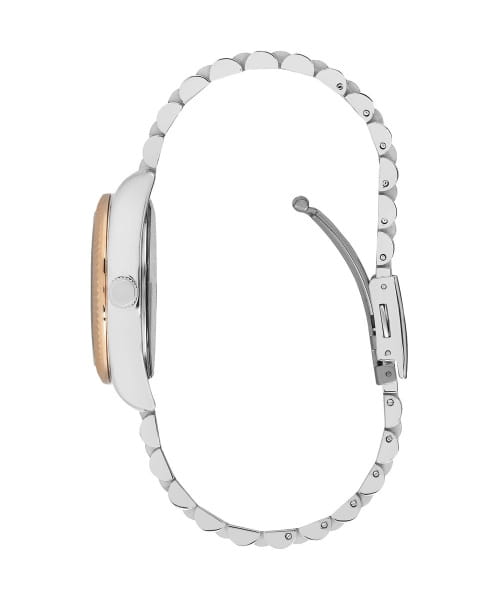 Женские элегантные наручные часы Slazenger SL.09.6556.4.04 сочетают в себе современный стиль и функциональность. Стильный корпус выполнен из суперметалла с неповортоным безелемБезельВнешний ободок, закрепляющий стекло. В спортивных часах так называется поворотное кольцо с делениями на циферблате, выполняет роль таймера – замеряет отрезки времени на шкале. Неподвижный безель – элемент декора. Однонаправленно вращающийся безель на дайверских часах позволяет фиксировать моменты погружения и выныривания на поверхность. с IP-покрытиемIP-покрытиеМетод ионного напыления. Демонстрирует повышенную устойчивость к истиранию, окислению и химическим веществам. Под воздействием высокого давления и температуры около 1500°C молекулы металла надёжно соединяются с частицами корпуса часов., придающий модели дополнительную прочность и элегантный внешний вид. Изысканный циферблат защищён минеральным стекломМинеральное стеклоМинеральное стекло представляет собой искусственно выращенный минерал кварца. Такое стекло отличается особой устойчивостью к повреждениям и царапинам. Уступает по некоторым качествам сапфировому стеклу., устойчивым к царапинам и повреждениям. Водонепроницаемость 3 АТМ позволяет использовать часы в повседневных условиях — при мытье рук или под лёгким дождём. Браслет из суперметалла с частичным IP-покрытиемIP-покрытиеМетод ионного напыления. Демонстрирует повышенную устойчивость к истиранию, окислению и химическим веществам. Под воздействием высокого давления и температуры около 1500°C молекулы металла надёжно соединяются с частицами корпуса часов. и с раскладной застёжкойРаскладная застёжкаТакой тип застёжки используется только на браслетах из металла. Она никогда не раскрывается полностью, происходит разделение на 2 и более частей. Раскладывающая застёжка снизит вероятность потери часов к минимуму., обеспечивающий надёжную фиксацию и комфорт при ношении. На отдельные циферблаты вынесены указатели 24-часового времени, даты и дня недели, что делает использование часов особенно удобным в повседневной жизни. Cтрелки и метки покрыты люминесцентным покрытиемЛюминесцентное покрытиеПозволяет считывать показания времени в темноте. Производители наносят на стрелки, часовые индексы, безель или поверхность циферблата светонакопительный состав, дающий холодное свечение. для читаемости в условиях недостаточного освещения. Эта модель идеально подходит для женщин, ценящих стиль, функциональность и надёжность в одном аксессуаре.