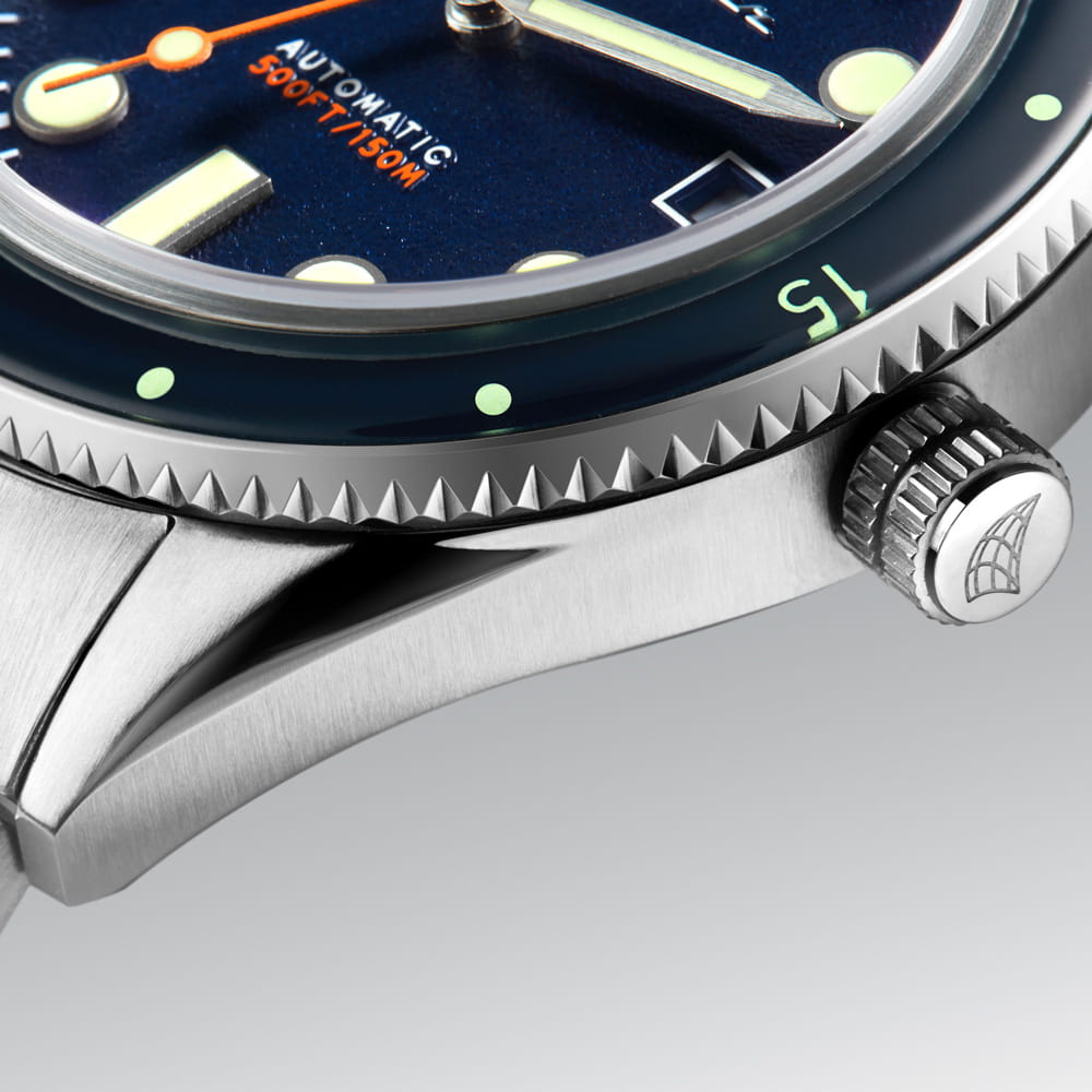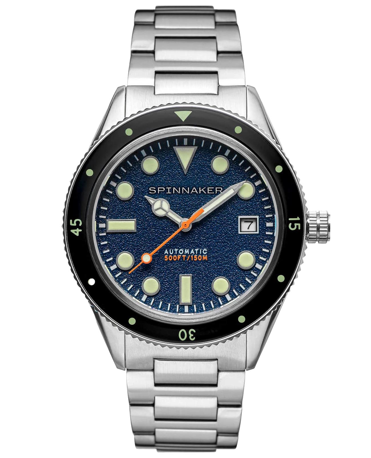 Мужские итальянские часы Spinnaker Dumas SP-5075-22, механический механизм (автоматический калибр) с высокой точностью. Циферблат с люминесцентным покрытиемЛюминесцентное покрытиеПозволяет считывать показания времени в темноте. Производители наносят на стрелки, часовые индексы, безель или поверхность циферблата светонакопительный состав, дающий холодное свечение. стрелок и меток, дополнен сапфировым стекломСапфировое стеклоПрочный и надёжный материал из кристалла сапфира синтетического происхождения, характеризующийся особой твёрдостью и устойчивостью к царапинам и повреждениям., устойчивым к появлению царапин и обладающее высокой прозрачностью. БезельБезельВнешний ободок, закрепляющий стекло. В спортивных часах так называется поворотное кольцо с делениями на циферблате, выполняет роль таймера – замеряет отрезки времени на шкале. Неподвижный безель – элемент декора. Однонаправленно вращающийся безель на дайверских часах позволяет фиксировать моменты погружения и выныривания на поверхность. с PVD-покрытиемPVDУльтратонкое покрытие наносится в технике вакуумного напыления, сочетает в себе нитрид титана особой прочности со слоем золота или оксида хрома. Несёт в себе декоративную или защитную функцию.. Класс водозащиты: 150 метров, позволит плавать, нырять и заниматься другими водными видами спорта. Корпус часов изготовлен из стали.