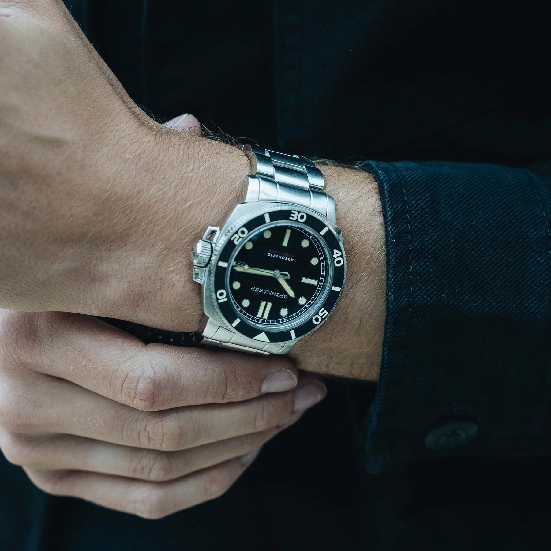 Мужские итальянские часы Spinnaker Hull Diver SP-5088-11, механический механизм (автоматический калибр) с высокой точностью. Циферблат с люминесцентным покрытиемЛюминесцентное покрытиеПозволяет считывать показания времени в темноте. Производители наносят на стрелки, часовые индексы, безель или поверхность циферблата светонакопительный состав, дающий холодное свечение. стрелок и меток, дополнен сапфировым стекломСапфировое стеклоПрочный и надёжный материал из кристалла сапфира синтетического происхождения, характеризующийся особой твёрдостью и устойчивостью к царапинам и повреждениям., устойчивым к появлению царапин и обладающее высокой прозрачностью. БезельБезельВнешний ободок, закрепляющий стекло. В спортивных часах так называется поворотное кольцо с делениями на циферблате, выполняет роль таймера – замеряет отрезки времени на шкале. Неподвижный безель – элемент декора. Однонаправленно вращающийся безель на дайверских часах позволяет фиксировать моменты погружения и выныривания на поверхность. с PVD-покрытиемPVDУльтратонкое покрытие наносится в технике вакуумного напыления, сочетает в себе нитрид титана особой прочности со слоем золота или оксида хрома. Несёт в себе декоративную или защитную функцию.. Класс водозащиты: 300 метров, позволит плавать, нырять и заниматься другими водными видами спорта. Корпус часов изготовлен из стали. Браслет с раскладной застёжкойРаскладная застёжкаТакой тип застёжки используется только на браслетах из металла. Она никогда не раскрывается полностью, происходит разделение на 2 и более частей. Раскладывающая застёжка снизит вероятность потери часов к минимуму..