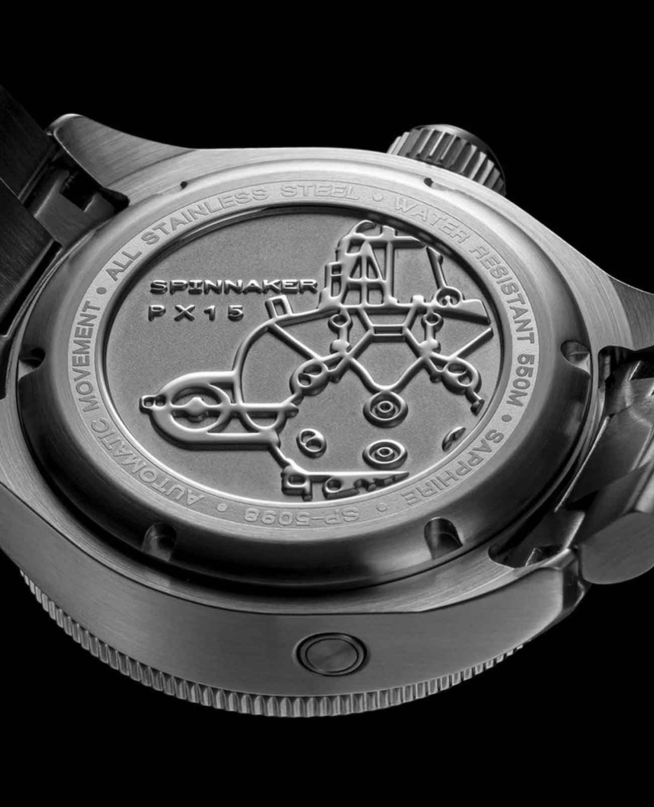 Мужские итальянские часы Spinnaker Spence SP-5098-11, механический механизм (автоматический калибр) с высокой точностью. Циферблат с люминесцентным покрытиемЛюминесцентное покрытиеПозволяет считывать показания времени в темноте. Производители наносят на стрелки, часовые индексы, безель или поверхность циферблата светонакопительный состав, дающий холодное свечение. стрелок и меток, дополнен сапфировым стекломСапфировое стеклоПрочный и надёжный материал из кристалла сапфира синтетического происхождения, характеризующийся особой твёрдостью и устойчивостью к царапинам и повреждениям., устойчивым к появлению царапин и обладающее высокой прозрачностью. Вращающийся безельБезельВнешний ободок, закрепляющий стекло. В спортивных часах так называется поворотное кольцо с делениями на циферблате, выполняет роль таймера – замеряет отрезки времени на шкале. Неподвижный безель – элемент декора. Однонаправленно вращающийся безель на дайверских часах позволяет фиксировать моменты погружения и выныривания на поверхность. с IP-покрытиемIP-покрытиеМетод ионного напыления. Демонстрирует повышенную устойчивость к истиранию, окислению и химическим веществам. Под воздействием высокого давления и температуры около 1500°C молекулы металла надёжно соединяются с частицами корпуса часов.. Класс водозащиты: 550 метров, позволит плавать, нырять и заниматься другими водными видами спорта. Корпус часов изготовлен из стали. Браслет с раскладной застёжкойРаскладная застёжкаТакой тип застёжки используется только на браслетах из металла. Она никогда не раскрывается полностью, происходит разделение на 2 и более частей. Раскладывающая застёжка снизит вероятность потери часов к минимуму..