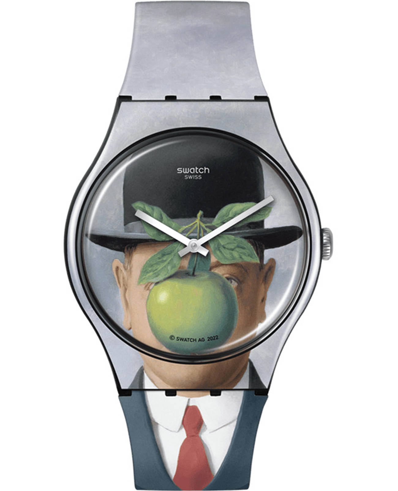 Часы Swatch SUOZ350 — это стильный и современный аксессуар для тех, кто ценит лёгкость и комфорт. Часы идеально подойдут как для мужчин, так и для женщин. На лицевой стороне модели LE FILS DE L'HOMME BY RENE MAGRITTE воспроизведена картина художника-сюрреалиста Рене Магритта «Le Fils de l’homme» («Сын человеческий»), изображение которой простирается по ремешку, корпусу и цветному циферблату. Оборотную сторону ремешка украшает надпись, отсылающая к сюрреалистическому стилю художника: «Ceci est une Swatch avec une pomme», что переводится как «Это часы Swatch с яблоком». Тренчик дополнен принтом с именем художника. Водозащита 30 метров делает часы практичными для повседневного использования. Эти часы подойдут для повседневного ношения и станут ярким акцентом в вашем наряде.