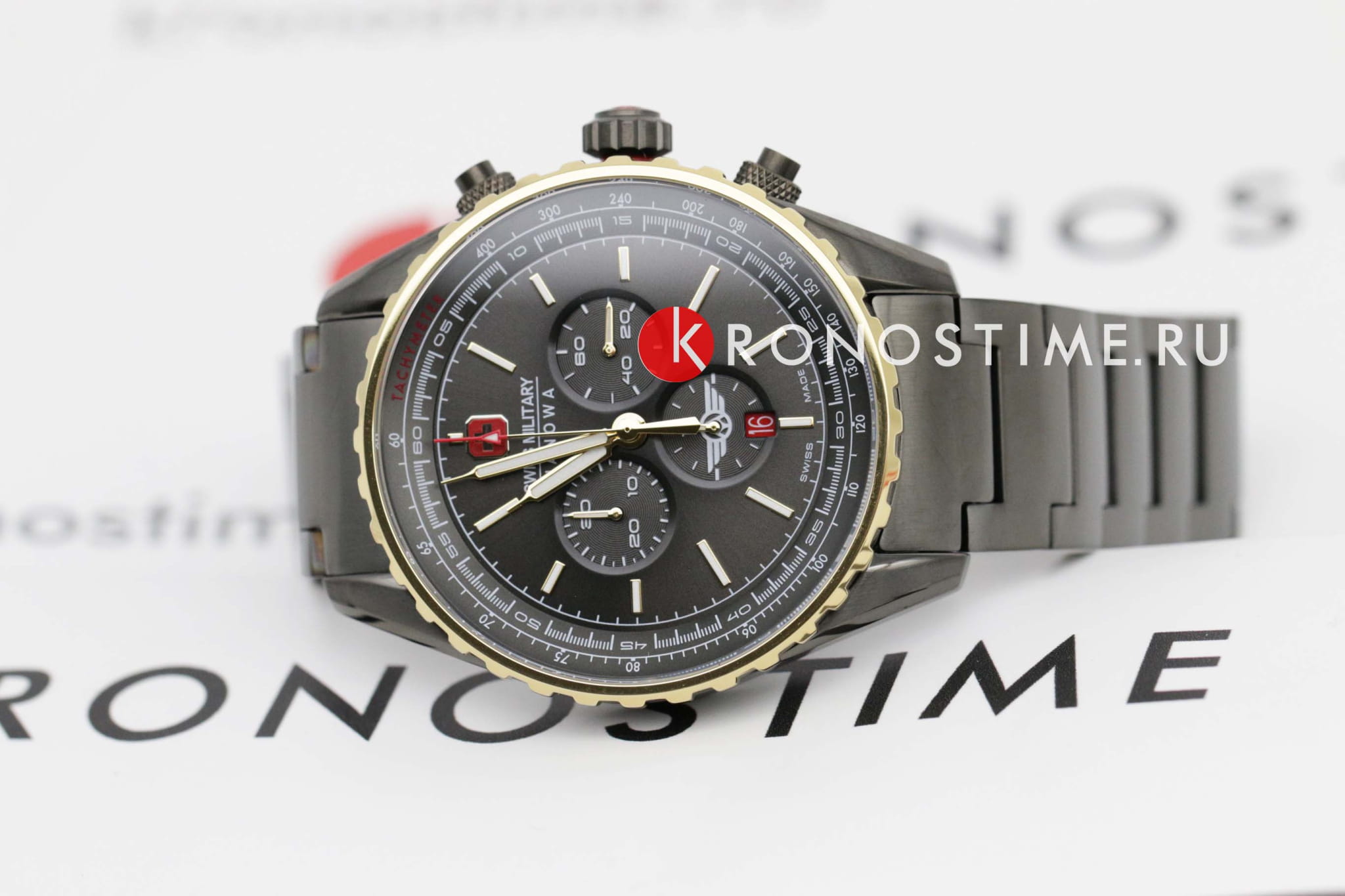 Мужские швейцарские часы c хронографомХронографФункция позволяет измерять отрезки времени с особой точностью: часы, минуты, секунды. Верным признаком хронографа является наличие на циферблате 3 дополнительных окошек-счётчиков. Swiss Military Hanowa SMWGI0000341, кварцевый механизм с высокой точностью. Сапфировое стеклоСапфировое стеклоПрочный и надёжный материал из кристалла сапфира синтетического происхождения, характеризующийся особой твёрдостью и устойчивостью к царапинам и повреждениям. устойчивое к появлению царапин, обладающее высокой прозрачностью. Класс водозащиты: 100 метров, позволит плавать, нырять и заниматься другими водными видами спорта. Корпус и браслет часов изготовлены из стали с IP-покрытиемIP-покрытиеМетод ионного напыления. Демонстрирует повышенную устойчивость к истиранию, окислению и химическим веществам. Под воздействием высокого давления и температуры около 1500°C молекулы металла надёжно соединяются с частицами корпуса часов.. Индикация даты. ТахиметрТахиметрРазмеченная шкала, располагается на ободке или безеле часов. Тахиметр позволяет рассчитать скорость на определённом участке пути, расстояние измеряется в километрах или милях.. Черный циферблат с часовыми индексами в виде штрихов. Стрелки и метки с люминесцентным покрытиемЛюминесцентное покрытиеПозволяет считывать показания времени в темноте. Производители наносят на стрелки, часовые индексы, безель или поверхность циферблата светонакопительный состав, дающий холодное свечение..