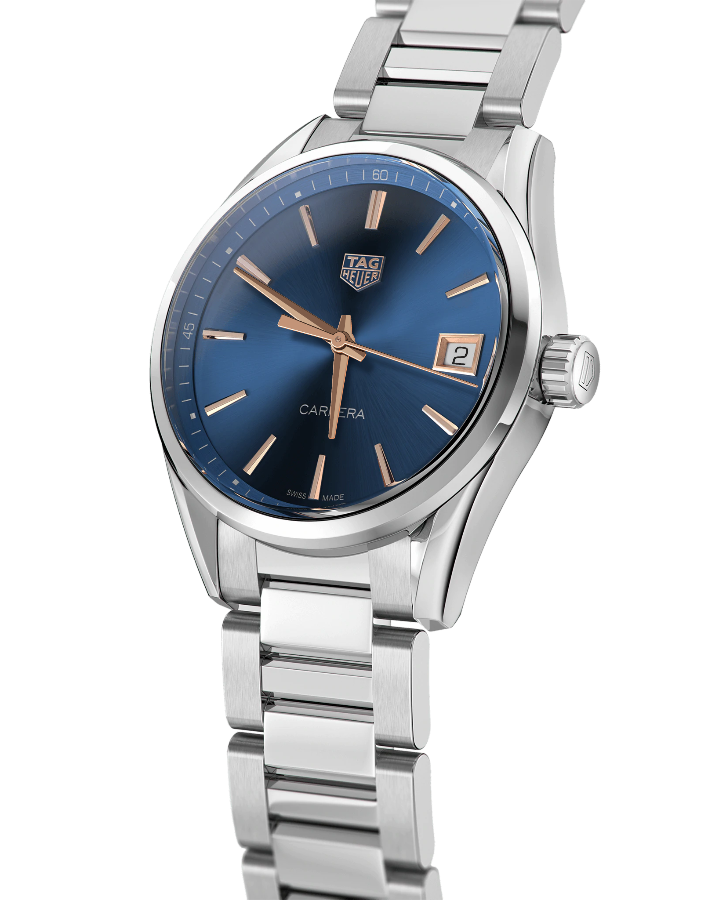 Женские швейцарский часы TAG Heuer Carrera Lady WBK1312.BA0652, кварцевый механизм с высокой точностью. Сапфировое стекло устойчивое к появлению царапин, обладающее высокой прозрачностью. Класс водозащиты: 100 метров, позволит плавать, нырять и заниматься другими водными видами спорта. Корпус часов изготовлен из стали, серебристого цвета. Эффектный темно-синий циферблат с изысканными элементами из розового золота придает этим часам TAG Heuer Carrera Lady неординарную элегантность.