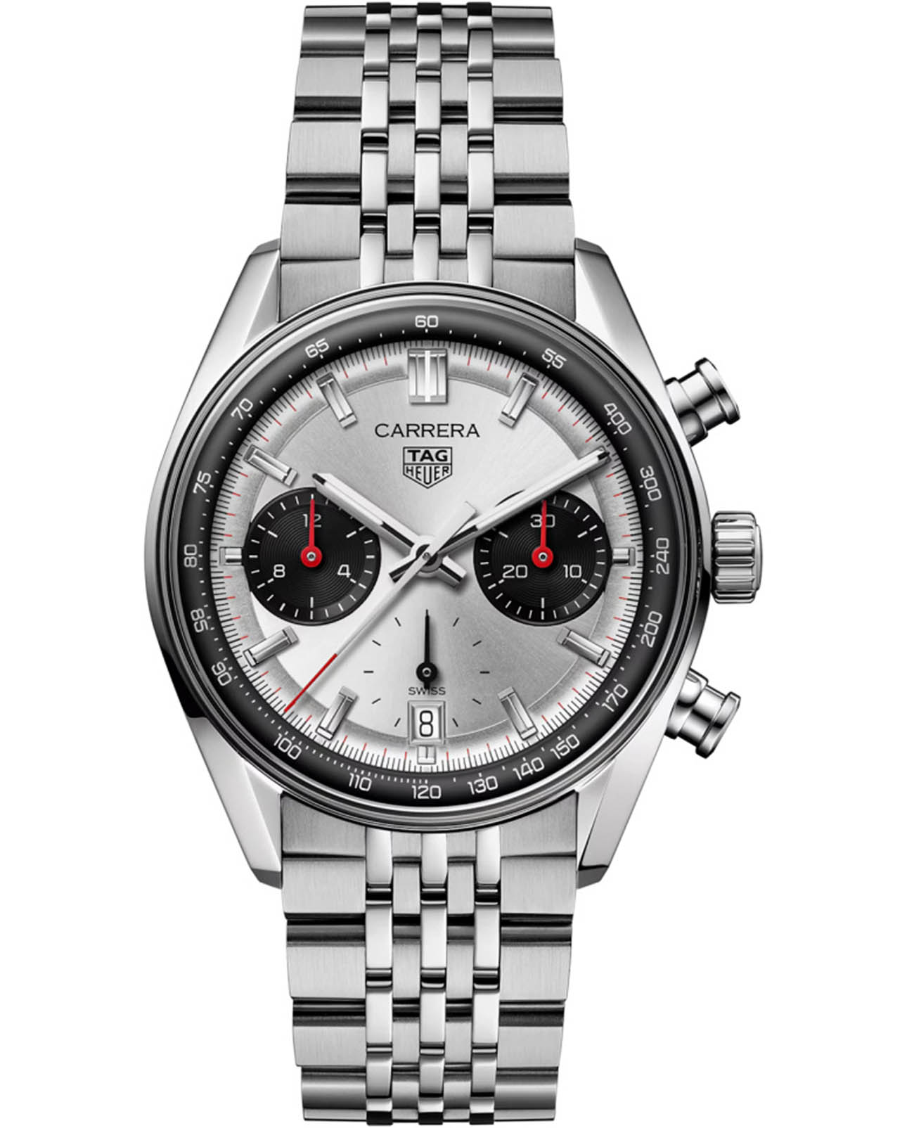 Часы TAG Heuer Carrera Chronograph CBS2216.BA0048. Эта потрясающая версия поднимает классическую модель Carrera на новые высоты. Фирменный дизайн циферблата придает часам эффектность, в то время как сапфировое стеклоСапфировое стеклоПрочный и надёжный материал из кристалла сапфира синтетического происхождения, характеризующийся особой твёрдостью и устойчивостью к царапинам и повреждениям. с выпуклой поверхностью, обрамляющее изгиб фланца, обеспечивает сверхточную разборчивость. Часы оснащены мануфактурным механизмом TAG Heuer TH20-00. Часы с хронографом ХронографФункция позволяет измерять отрезки времени с особой точностью: часы, минуты, секунды. Верным признаком хронографа является наличие на циферблате 3 дополнительных окошек-счётчиков.. Механический механизм (автоматический калибр) с высокой точностью. Класс водозащиты: 100 метров, позволит плавать, нырять и заниматься другими водными видами спорта. Часы с люминесцентным покрытиемЛюминесцентное покрытиеПозволяет считывать показания времени в темноте. Производители наносят на стрелки, часовые индексы, безель или поверхность циферблата светонакопительный состав, дающий холодное свечение.. Корпус часов изготовлен из нержавеющей стали. Стальной браслет с раскладной застёжкойРаскладная застёжкаТакой тип застёжки используется только на браслетах из металла. Она никогда не раскрывается полностью, происходит разделение на 2 и более частей. Раскладывающая застёжка снизит вероятность потери часов к минимуму..