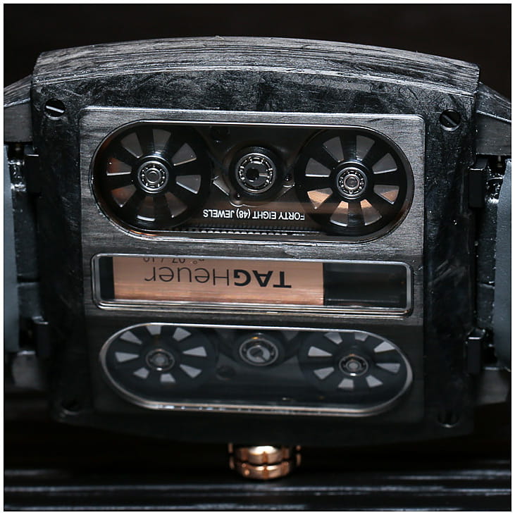 Часы ограниченной серии и уникальным механизмом станут прекрасным подарком для коллекционера. Monaco V4 Carbon. Лимитированная серия - 10 экземпляров. Скелетонизированные часы. Часы приводится в движение революционным механизмом на кожаных ремнях. Толщина ремней 0,07мм, что соответствует толщине человеческого волоса. В механизме 48 камней. Четыре заводных барабана механизма обеспечивают 40-часовой запас хода. Секундная стрелка вынесена на отдельный циферблат. Сапфировое стекло с двухсторонним антибликовым покрытием позволит наблюдать за работой механизма даже в самый солнечный день. Заводная головка выполнена из золота. Прозрачная сапфировая задняя крышка. Ремешок с раскладывающейся застежкой.