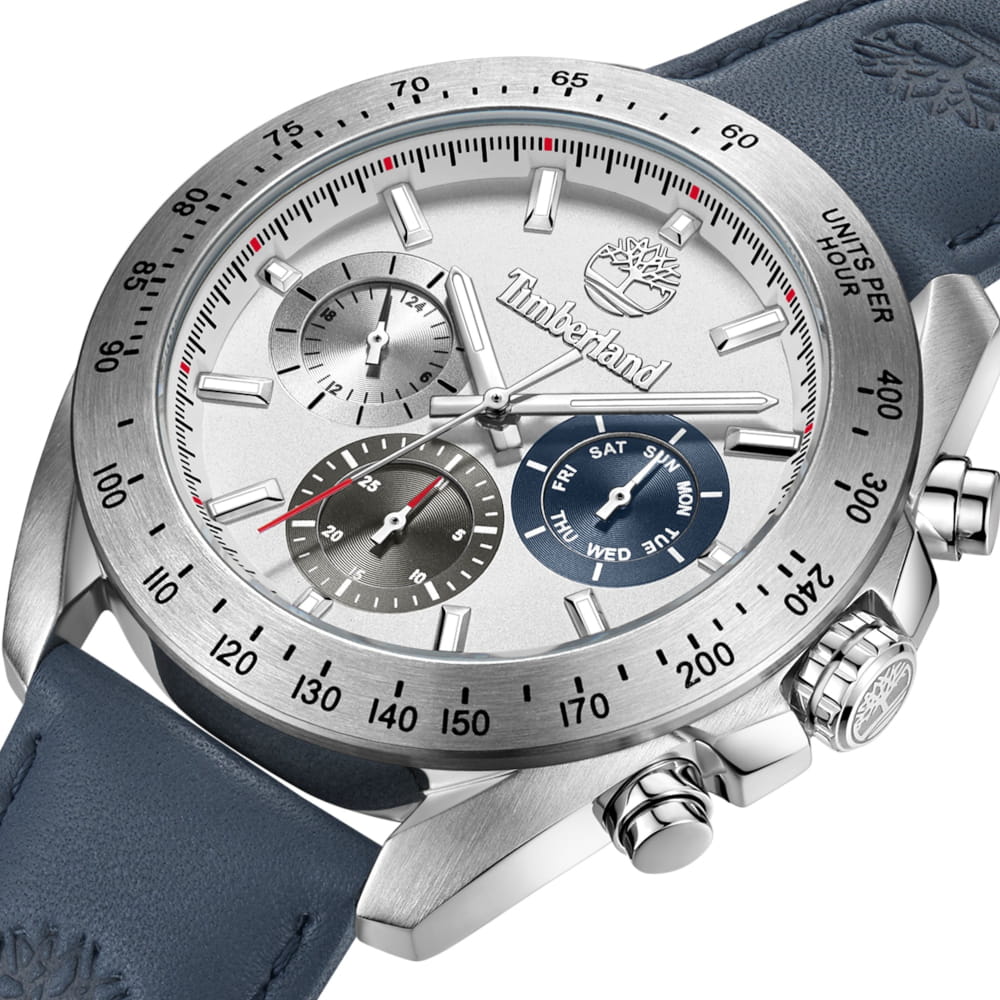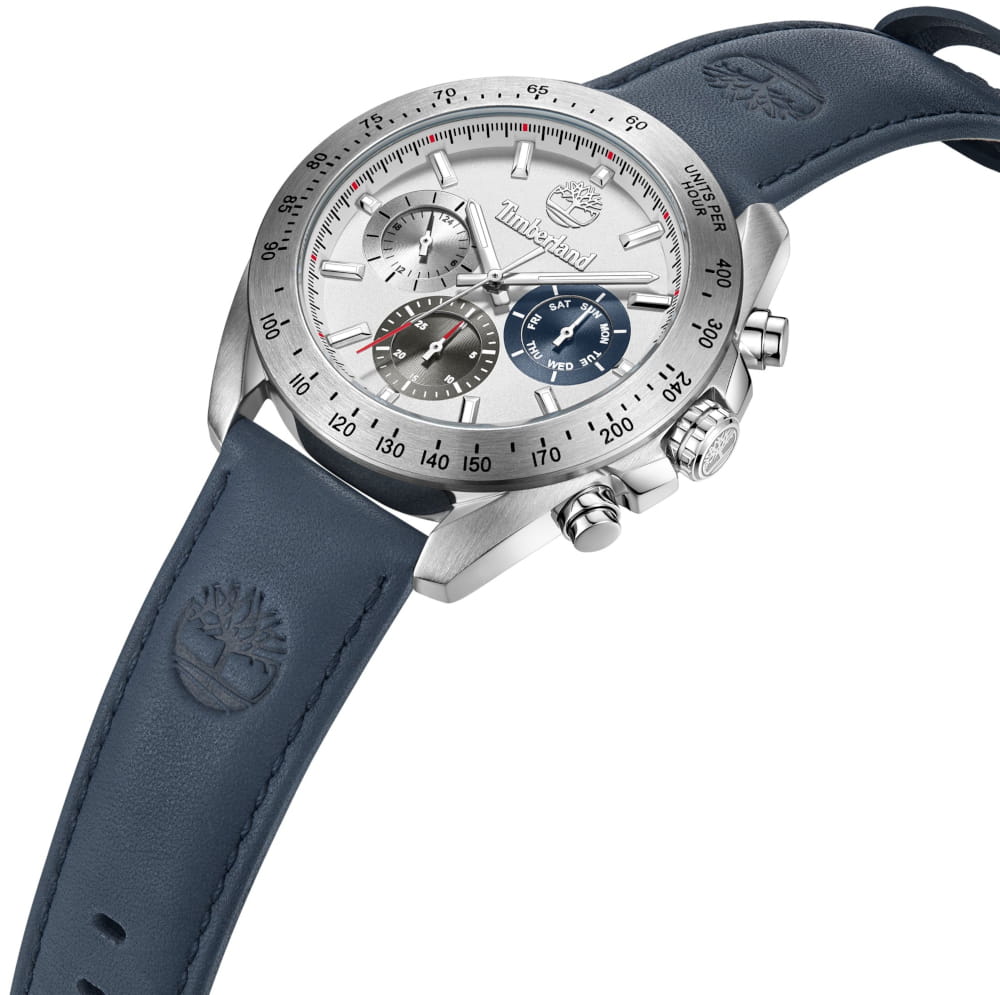 Американские мужские часы-хронографХронографФункция позволяет измерять отрезки времени с особой точностью: часы, минуты, секунды. Верным признаком хронографа является наличие на циферблате 3 дополнительных окошек-счётчиков. Timberland Carrigan TDWGF0009802 имеют кварцевый механизм с высокой точностью. Класс водозащиты: 50 метров, позволит защитить корпус от случайных брызг или капель дождя. 12-ти и 24-х часовой формат времени. Прочное минеральное стеклоМинеральное стеклоМинеральное стекло представляет собой искусственно выращенный минерал кварца. Такое стекло отличается особой устойчивостью к повреждениям и царапинам. Уступает по некоторым качествам сапфировому стеклу.. Стрелки и метки циферблата с люминесцентным покрытиемЛюминесцентное покрытиеПозволяет считывать показания времени в темноте. Производители наносят на стрелки, часовые индексы, безель или поверхность циферблата светонакопительный состав, дающий холодное свечение.. Корпус часов изготовлен из стали. Кожаный ремешок с классической застежкой. ТахиметрТахиметрРазмеченная шкала, располагается на ободке или безеле часов. Тахиметр позволяет рассчитать скорость на определённом участке пути, расстояние измеряется в километрах или милях..