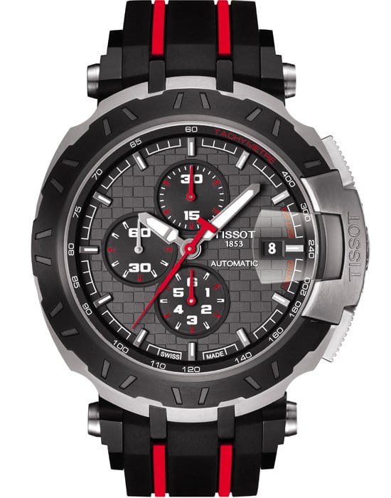 TISSOT T0924272706100 - мужские механические наручные часы Корпус этих часов крупного размера (45 мм) и выполнен из нержавеющей стали L316 Модель T0924272706100 имеет устойчивое к царапинам сапфировое стекло, ремешок из натурального каучука черного цвета, черный циферблат Калибр механизма: ETA G10211 Класс водозащиты: 100 м / 10 АТМ (разрешается плавание и ныряние без акваланга) Дополнительные функции и особенности: отображение числа, хронограф (секундомер) Ограниченная серия MotoGP Limited Edition Полная заводская комплектация TISSOT: оригинальные часы, фирменная коробка, инструкция, сервисная книжка, роман о часовой фабрике, миникаталог, замшевый фирменный чехол черного цвета для хранения и/или переноски часов, кассовый и товарный чеки Международная гарантия 2 года Производство и сборка: Швейцария
