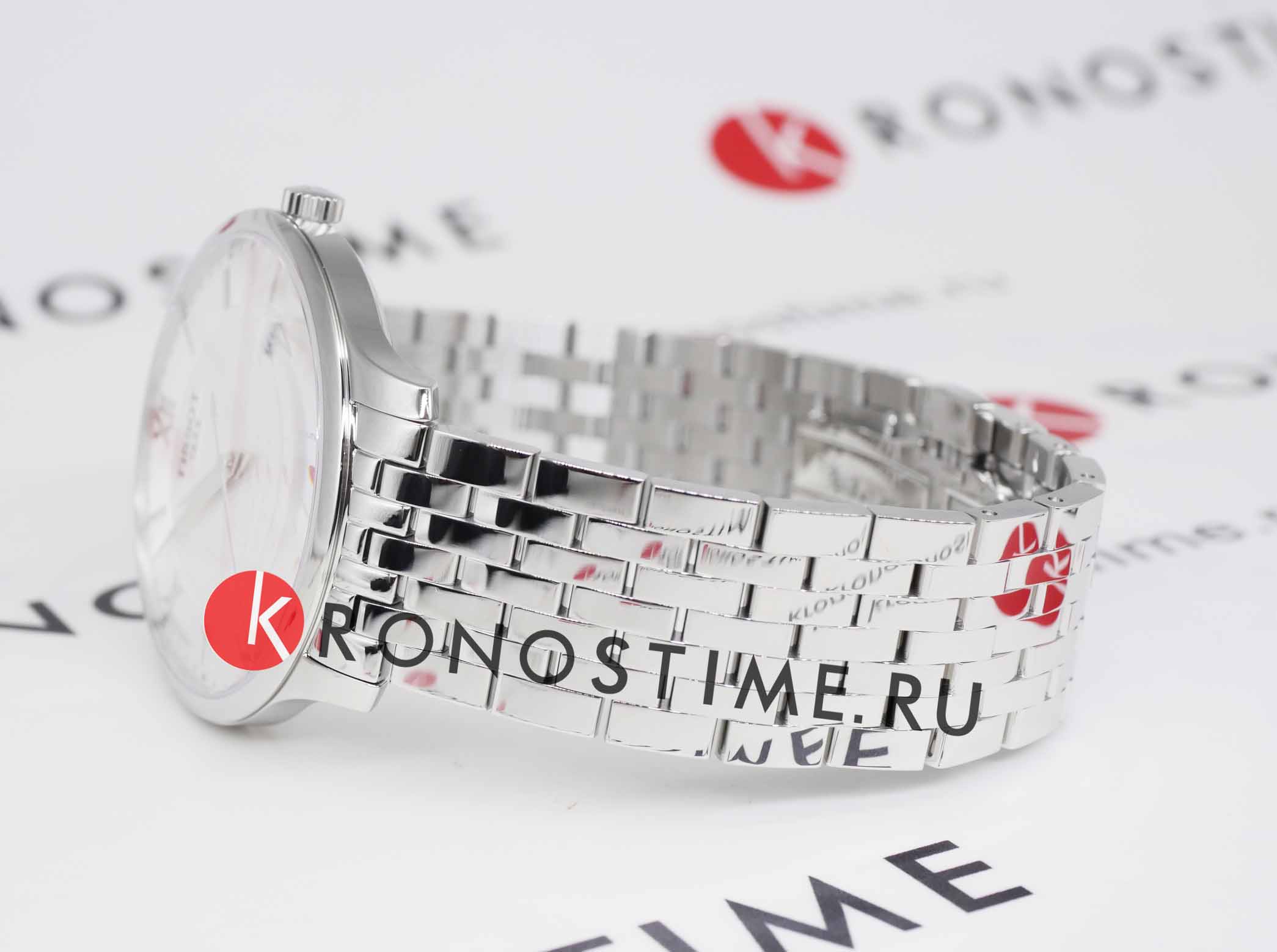 Классическая модель с винтажными элементами в виде римских цифр обладает оригинальным узорчатым циферблатом, такая дизайнерская особенность позволяет придать образу толику эксклюзивности. Кварцевый механизм ETA F06.111 с высокой точностью хода +/- 20 сек/мес. Выпуклое сапфировое стекло. Корпус и браслет из нержавеющей стали, устойчивой к царапинам и повреждениям. Функция EOLEOLПредставляет собой систему, уведомляющую владельца часов о необходимости замены элемента питания. За 2 недели до полного разряда батарейки секундная стрелка перестаёт ходить чётко и начинает перепрыгивать на 3-4 деления., отображение даты. Габариты: 42 x 42 x 7,5 мм.