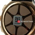 Внешний облик модели был вдохновлён лучшими гоночными мотоциклами. Массивный корпус имеет крупные детали, на чёрном циферблате чётко выделяются золотистые счётчики хронографаХронографФункция позволяет измерять отрезки времени с особой точностью: часы, минуты, секунды. Верным признаком хронографа является наличие на циферблате 3 дополнительных окошек-счётчиков., стрелки и метки с люминесцентным покрытиемЛюминесцентное покрытиеПозволяет считывать показания времени в темноте. Производители наносят на стрелки, часовые индексы, безель или поверхность циферблата светонакопительный состав, дающий холодное свечение.. Динамичный аксессуар позволит заявить о себе в любой ситуации, эксклюзивности добавляет прозрачная задняя крышка в виде колеса. Кварцевый механизм ETA G10.212. Корпус с золотистым PVD-покрытиемPVDУльтратонкое покрытие наносится в технике вакуумного напыления, сочетает в себе нитрид титана особой прочности со слоем золота или оксида хрома. Несёт в себе декоративную или защитную функцию.. Гибкий силиконовый ремешок. Секундомер, отображение текущего числа. Габариты: 47,6 x 43 x 12,3 мм.