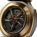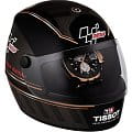 Наручные часы с чемпионским характером и стилистикой MotoGP выпускаются лимитированным тиражом, всего существует 3333 экземпляра. На нижней части задней крышки, выполненной в виде колеса, выгравирован индивидуальный номер. Модель дополнена механизмом C01.211 с запасом хода 45 часов. Корпус из хирургической стали с PVD-покрытиемPVDУльтратонкое покрытие наносится в технике вакуумного напыления, сочетает в себе нитрид титана особой прочности со слоем золота или оксида хрома. Несёт в себе декоративную или защитную функцию. цвета розового золота. Водостойкость до 10 бар. Кожаный ремешок с внутренней стороной из каучука. Антибликовое покрытие на поверхности сапфирового стекла. Оригинальная упаковка в виде мотошлема. Секундомер, тахиметрТахиметрРазмеченная шкала, располагается на ободке или безеле часов. Тахиметр позволяет рассчитать скорость на определённом участке пути, расстояние измеряется в километрах или милях., календарь. Габариты: 48,8 x 45 x 16,6 мм.