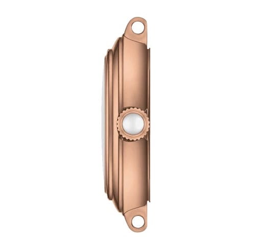 Дизайнеры реализуют свои идеи в оригинальном оформлении браслетов, центральные звенья цвета "розовое золото" приковывают взгляды. Интерес представляет также перламутровый циферблат компактного размера, благодаря этому часы красиво смотрятся на изящном женском запястье. Кварцевый механизм ETA F03.111. PVD-покрытие корпуса и браслета. Водонепроницаемость 100 метров. Габариты: 26 x 26 x 6,9 мм.