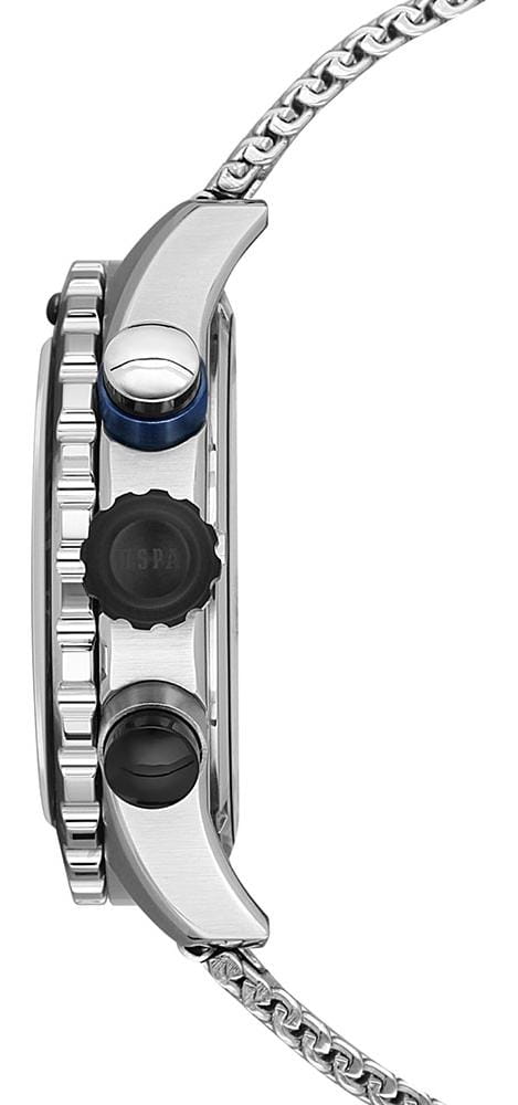 Мужские часы U.S. Polo Assn. Crossing USPA1025-02 кварцевый механизм с высокой точностью. Минеральное стеклоМинеральное стеклоМинеральное стекло представляет собой искусственно выращенный минерал кварца. Такое стекло отличается особой устойчивостью к повреждениям и царапинам. Уступает по некоторым качествам сапфировому стеклу. устойчивое к появлению царапин, обладающее высокой прозрачностью. Корпус и браслет изготовлены из нержавеющей стали. На циферблате три дополнительных индикатора. БезельБезельВнешний ободок, закрепляющий стекло. В спортивных часах так называется поворотное кольцо с делениями на циферблате, выполняет роль таймера – замеряет отрезки времени на шкале. Неподвижный безель – элемент декора. Однонаправленно вращающийся безель на дайверских часах позволяет фиксировать моменты погружения и выныривания на поверхность. из нержавеющей стали с IP-покрытиемIP-покрытиеМетод ионного напыления. Демонстрирует повышенную устойчивость к истиранию, окислению и химическим веществам. Под воздействием высокого давления и температуры около 1500°C молекулы металла надёжно соединяются с частицами корпуса часов.. Центральные часовая, минутная и секундная стрелки. Индикация даты и дня недели. 12/24х часовой формат времени. Стрелки с люминесцентным покрытиемЛюминесцентное покрытиеПозволяет считывать показания времени в темноте. Производители наносят на стрелки, часовые индексы, безель или поверхность циферблата светонакопительный состав, дающий холодное свечение.. Класс водозащиты: 50 метров, позволит защитить корпус от случайных брызг или капель дождя.Стальной браслет миланского плетения на раскладном замкеРаскладной замокДанный вариант застежки используется только на часах с металлическим браслетом. Отличительная особенность такого крепления в том, что длина браслета становится универсальной и вы можете самостоятельно отрегулировать нужный вам размер – застежка просто двигается по браслету часов..