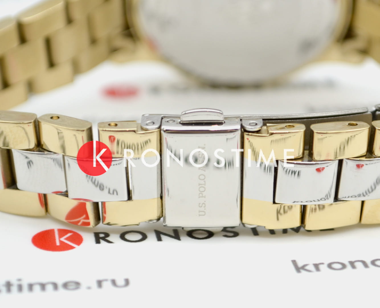 Женские часы U.S. Polo Assn. Fundamental USPA2044-06, кварцевый механизм с высокой точностью. Минеральное стеклоМинеральное стеклоМинеральное стекло представляет собой искусственно выращенный минерал кварца. Такое стекло отличается особой устойчивостью к повреждениям и царапинам. Уступает по некоторым качествам сапфировому стеклу. устойчивое к появлению царапин, обладающее высокой прозрачностью. Корпус изготовлен из нержавеющей стали с IP-покрытиемIP-покрытиеМетод ионного напыления. Демонстрирует повышенную устойчивость к истиранию, окислению и химическим веществам. Под воздействием высокого давления и температуры около 1500°C молекулы металла надёжно соединяются с частицами корпуса часов.. Граненый стеклянный безельБезельВнешний ободок, закрепляющий стекло. В спортивных часах так называется поворотное кольцо с делениями на циферблате, выполняет роль таймера – замеряет отрезки времени на шкале. Неподвижный безель – элемент декора. Однонаправленно вращающийся безель на дайверских часах позволяет фиксировать моменты погружения и выныривания на поверхность.. Метки украшены кристаллами. Класс водозащиты: 50 метров, позволит защитить корпус от случайных брызг или капель дождя. Стальной браслет с частичным IP-покрытиемIP-покрытиеМетод ионного напыления. Демонстрирует повышенную устойчивость к истиранию, окислению и химическим веществам. Под воздействием высокого давления и температуры около 1500°C молекулы металла надёжно соединяются с частицами корпуса часов. на раскладной застёжкеРаскладная застёжкаТакой тип застёжки используется только на браслетах из металла. Она никогда не раскрывается полностью, происходит разделение на 2 и более частей. Раскладывающая застёжка снизит вероятность потери часов к минимуму..
