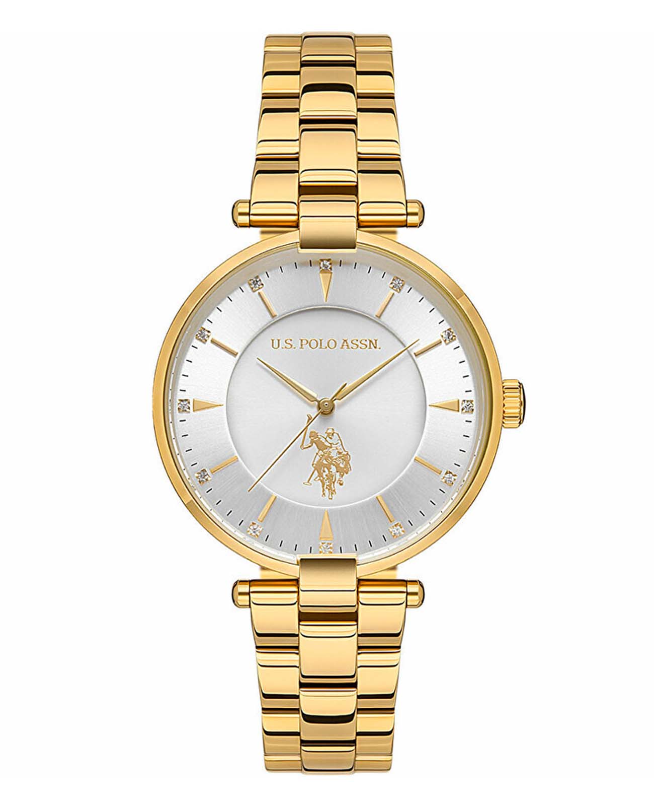 Женские часы U.S. Polo Assn Stile USPA2048-04, кварцевый механизм с высокой точностью. Минеральное стеклоМинеральное стеклоМинеральное стекло представляет собой искусственно выращенный минерал кварца. Такое стекло отличается особой устойчивостью к повреждениям и царапинам. Уступает по некоторым качествам сапфировому стеклу. устойчивое к появлению царапин, обладающее высокой прозрачностью. Корпус изготовлен из нержавеющей стали с IP-покрытиемIP-покрытиеМетод ионного напыления. Демонстрирует повышенную устойчивость к истиранию, окислению и химическим веществам. Под воздействием высокого давления и температуры около 1500°C молекулы металла надёжно соединяются с частицами корпуса часов.. Циферблат украшен кристаллами. Класс водозащиты: 30 метров, позволит защитить корпус от случайных брызг или капель дождя. Стальной браслет с IP-покрытиемIP-покрытиеМетод ионного напыления. Демонстрирует повышенную устойчивость к истиранию, окислению и химическим веществам. Под воздействием высокого давления и температуры около 1500°C молекулы металла надёжно соединяются с частицами корпуса часов. на раскладной застёжкеРаскладная застёжкаТакой тип застёжки используется только на браслетах из металла. Она никогда не раскрывается полностью, происходит разделение на 2 и более частей. Раскладывающая застёжка снизит вероятность потери часов к минимуму..