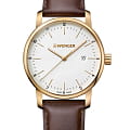 Швейцарские мужские часы в классическом стиле Wenger 01.1741.108, кварцевый механизм с высокой точностью. Класс водозащиты: 100 метров, позволит плавать, нырять и заниматься другими водными видами спорта. Корпус часов изготовлен из стали, золотистого цвета.